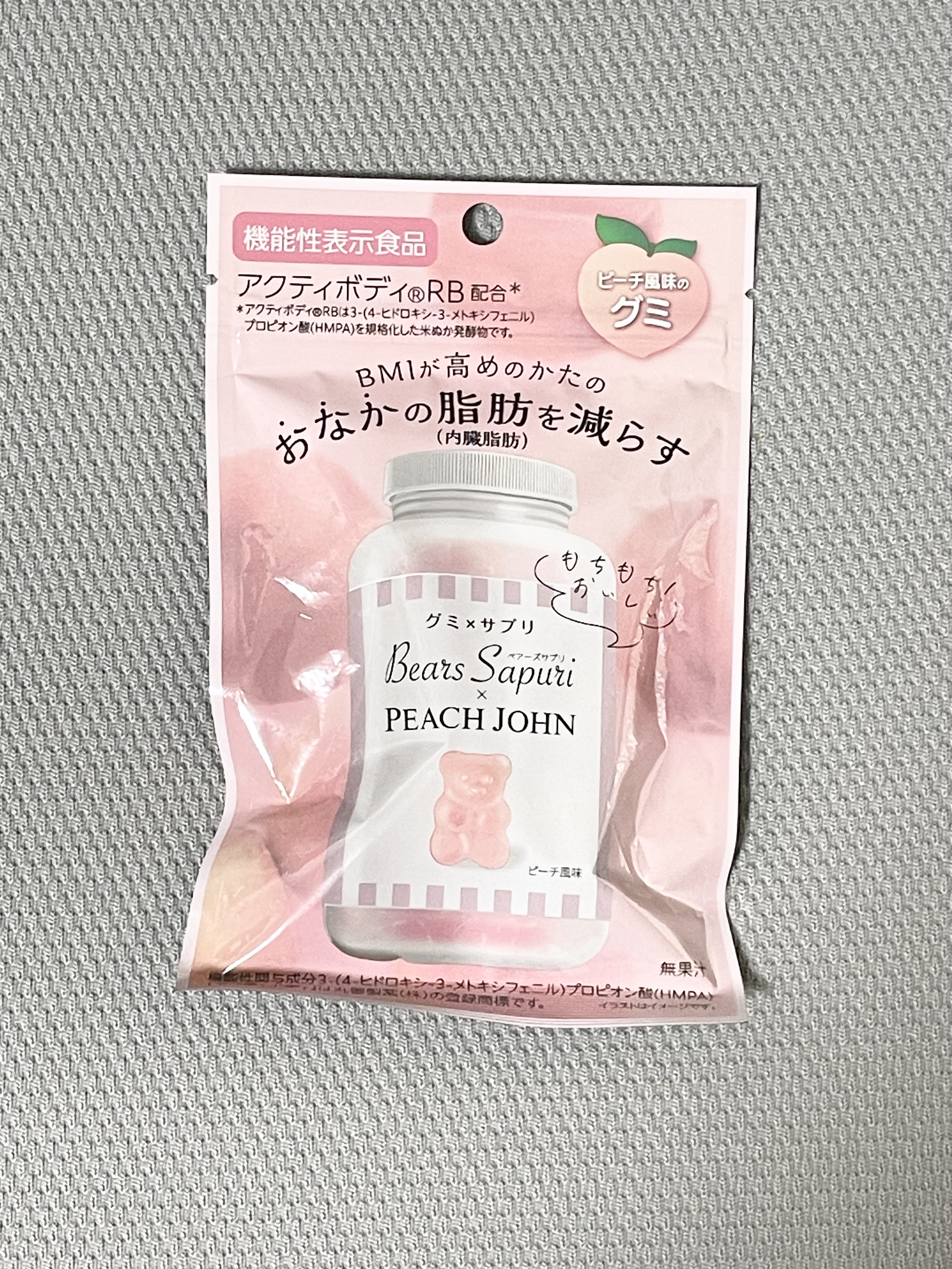 エムズインクベアーズサプリ×PEACHJOHNピーチ風味くまちゃんのカタチの可愛い美容グミサプリ🩷PEACHJOHNとのコラボバージョンで、フルーティーでさわやかなピーチ味🍑良い意味でサプリメント感がなく食べやすいです。もちもち弾力のある噛み...
