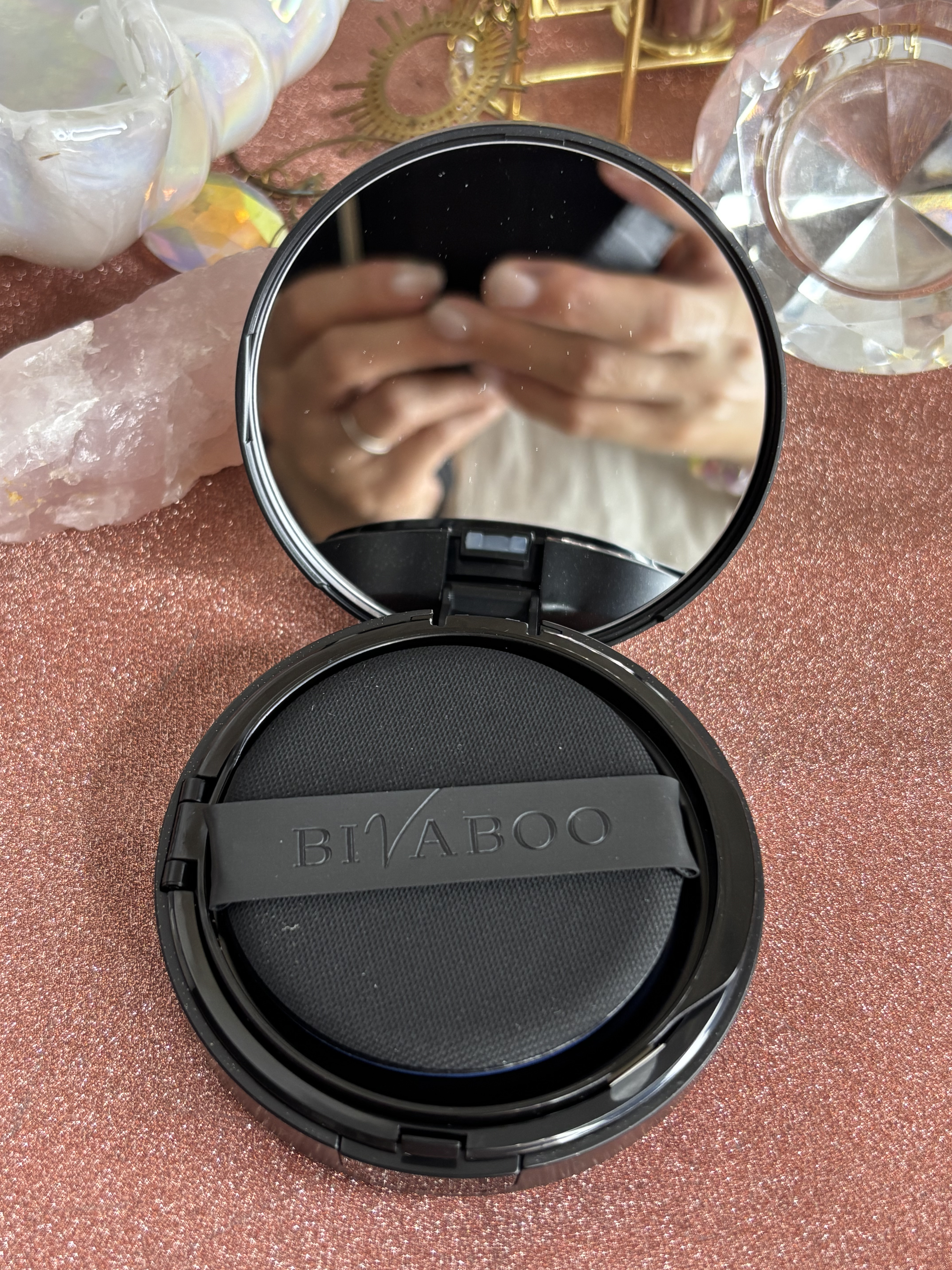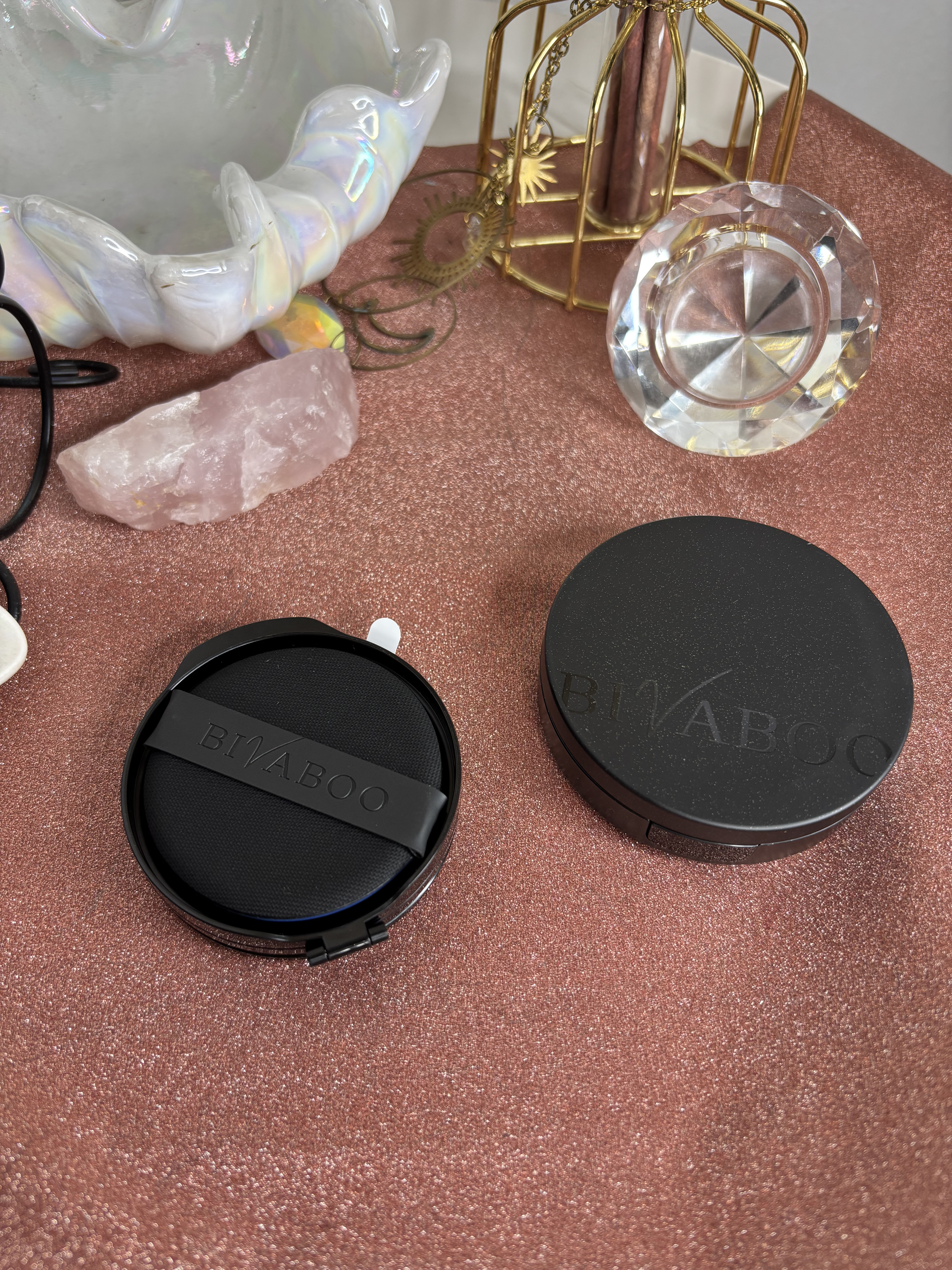 BIVABOOベルベットジュエルクッションファンデーションSPF50+/PA++++サファイヤ・ルビーなどのジュエルパウダーが配合された微細な光沢が特長のセミマットクッションファンデーションパッケージはマットなブラックでシンプルデザイン🩶レチ...