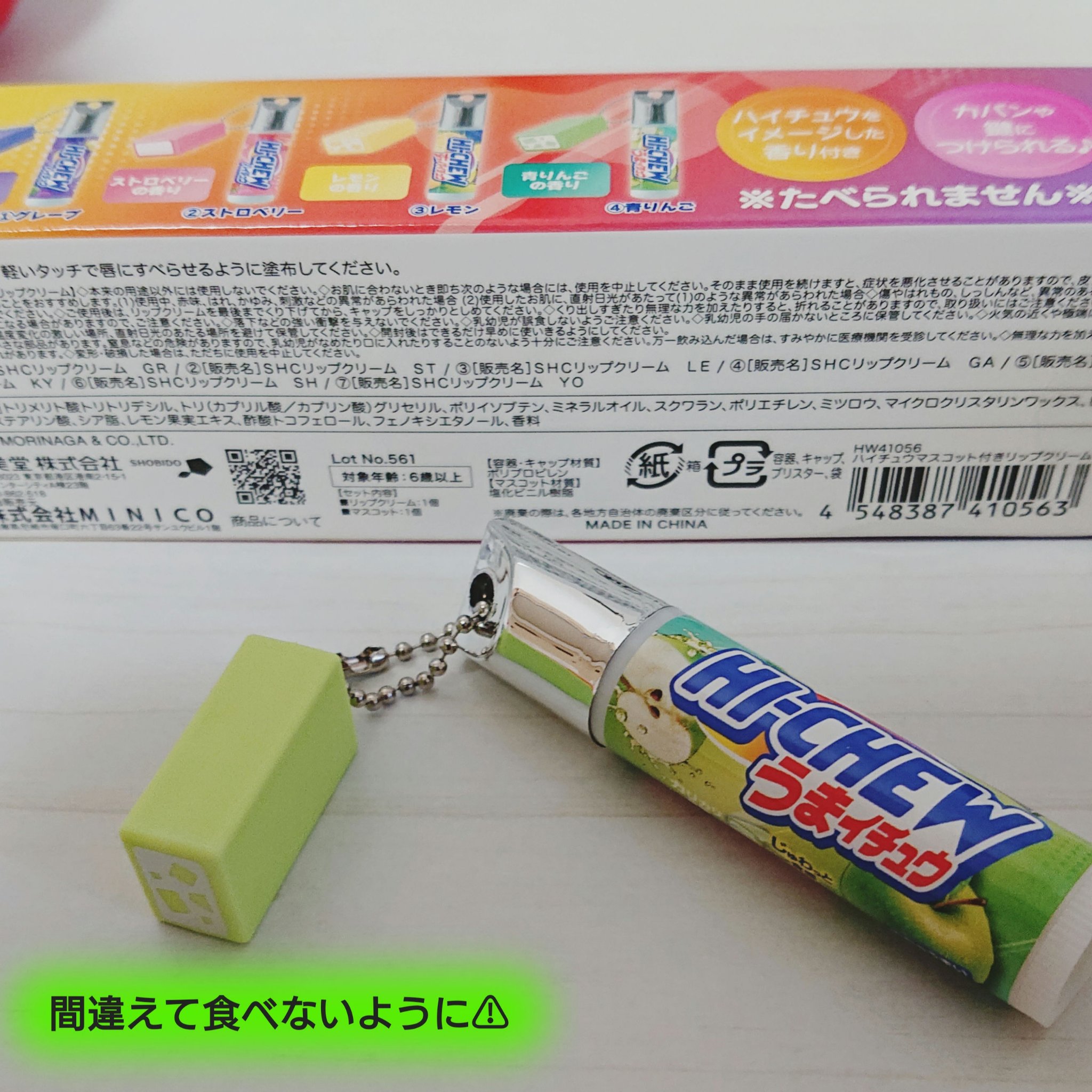 SHOBIDOよりハイチュウマスコット付きリップクリームセットLIPSポイントが溜まってて、投稿で見てかわいいと思ってたので😉LIPSショッピングで買ってみました(*^^*)セット、とありますがハイチュウの模型とリップがばらばらに入ってて、自...