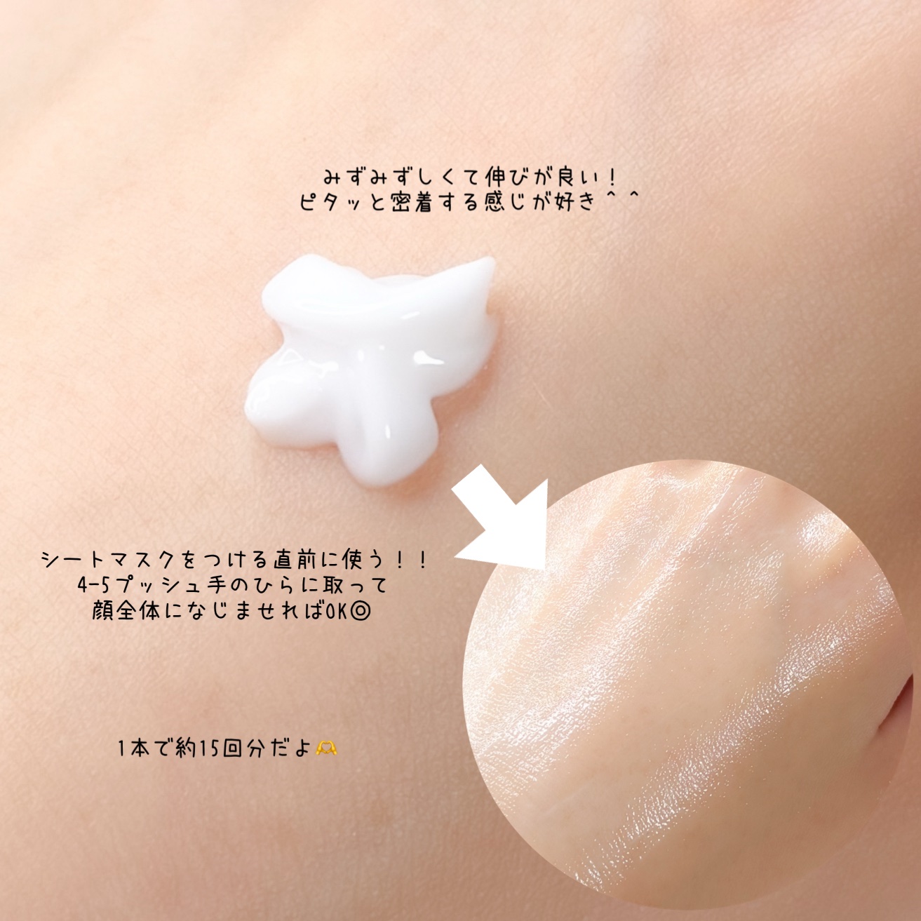 | 出した時はとろっとするのに 肌にのせると ぱしゃっとはじけるように すごくみずみずしく感じるの😇 | 詳細を見る | ||