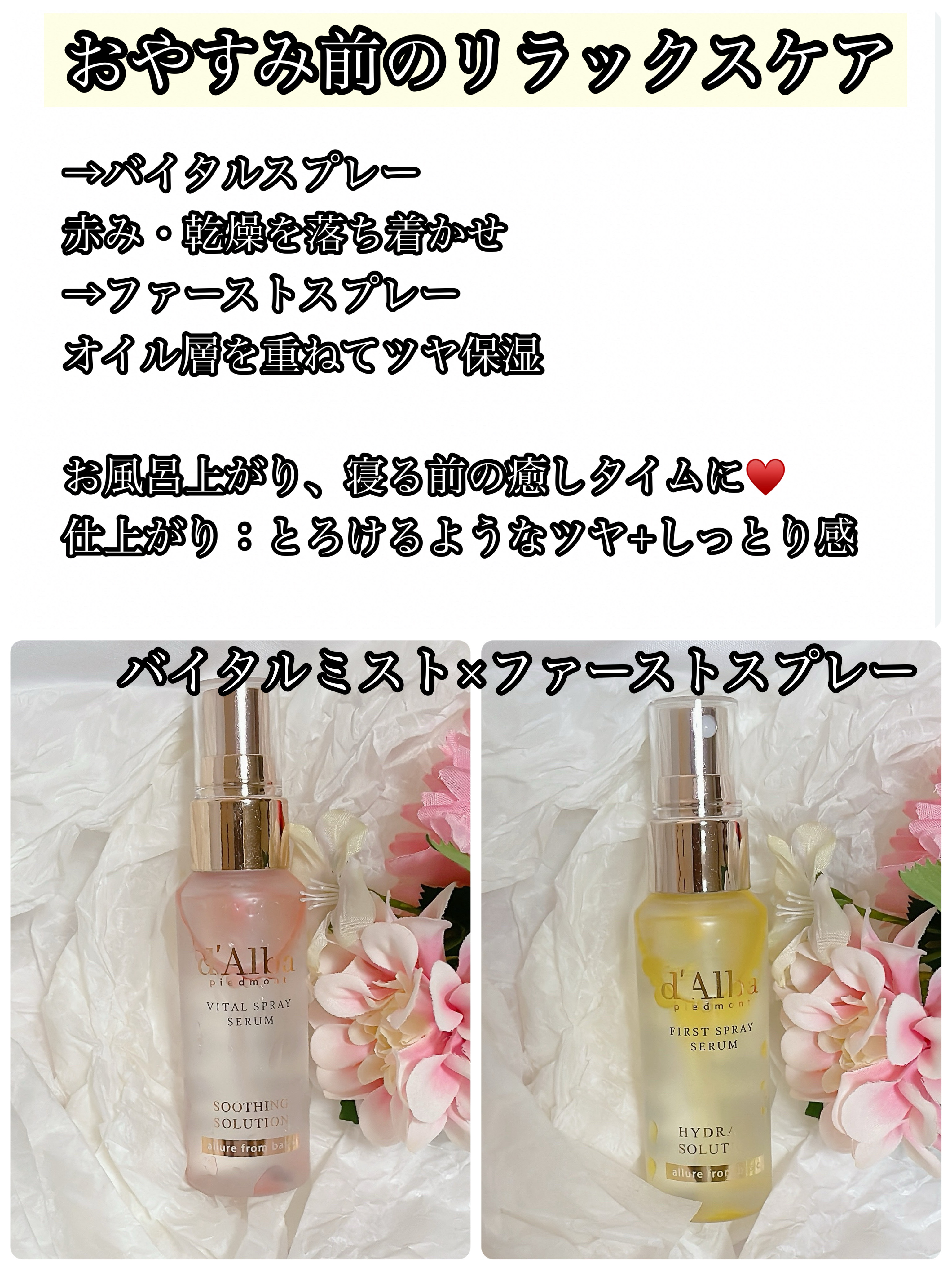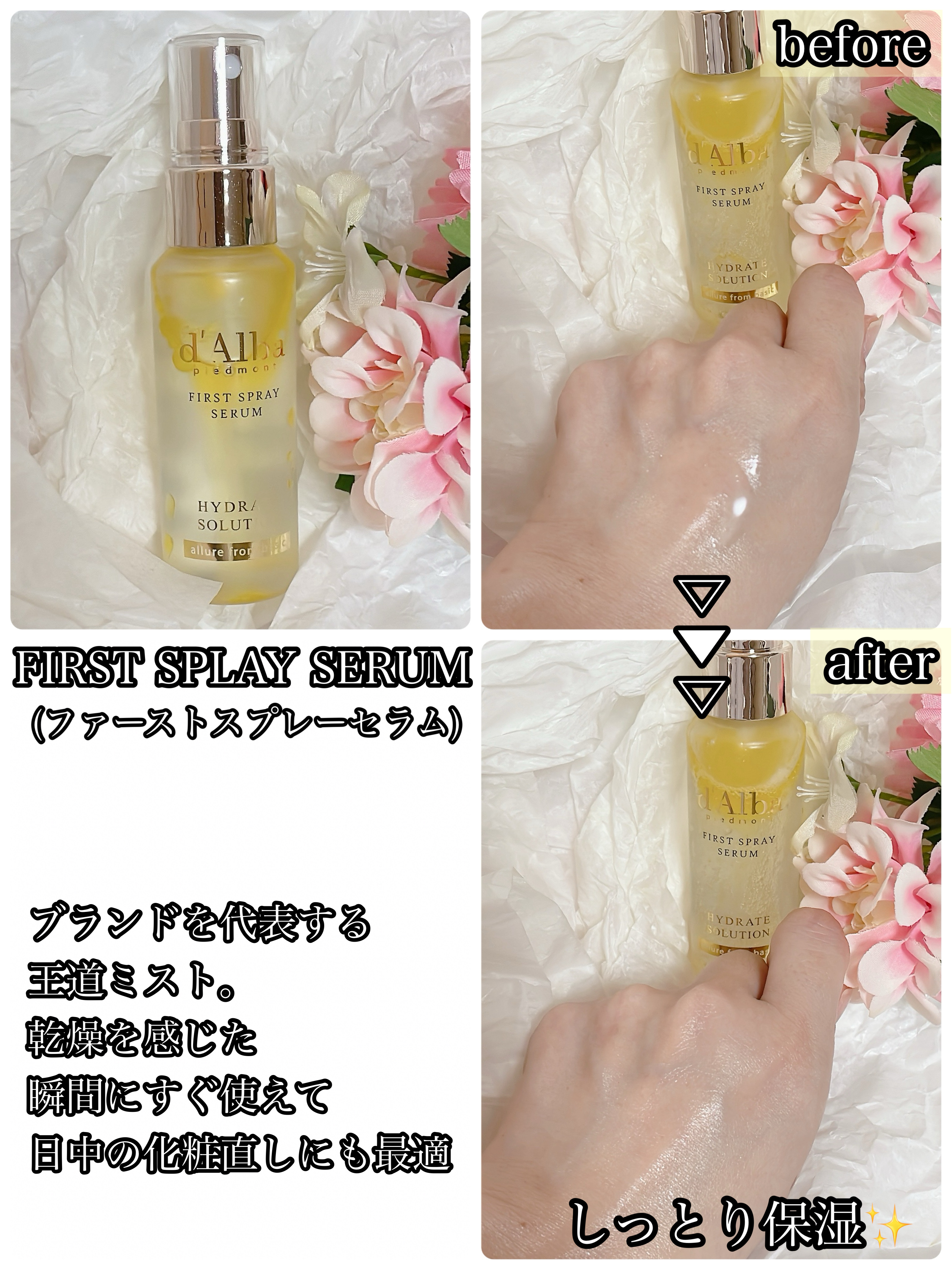 _🏷️PR🫧肌と気分で使い分け❕ダルバのミスト、5種類ぜんぶ優秀すぎて手放せないよ〜〜🥺🫶🏻💛FirstSpraySerumべたつかず水分たっぷり!乾燥してるときのデイリーケアにぴったり︎︎👍🏻︎︎匂いも好きだからリフレッシュできる♡🩷Vit...