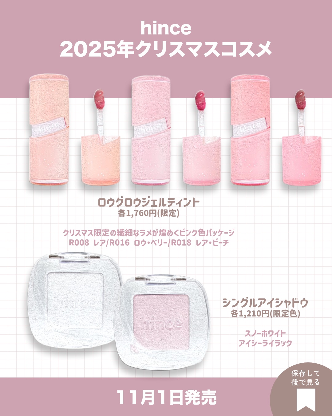 《hinceのホリデー🎄全商品全力スウォッチ❣️》hinceからホリデー限定の『スノーフラワーコレクション』が登場☃️❄️︎🤍新発売のキラキラベースも勿論スウォッチしていくよ🫶🏻︎︎❄️11月1日新発売︎❄️hinceラディアンスメイクアップ...