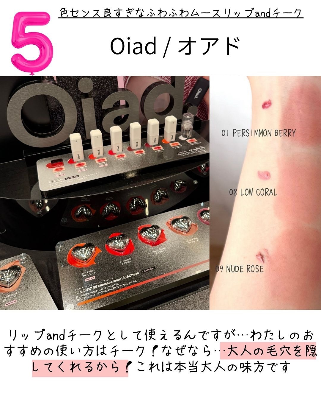 Visée「レイヤードフルリチーク」全色レビュー‼️さっそく使ってて褒められました🩷右側のハイライトが高発色でとってもかわいいです。シルバーに偏光するので、ブルベさんでもブラウンやオレンジにチャレンジできるのでは🧡と思いました。わたしは1st...