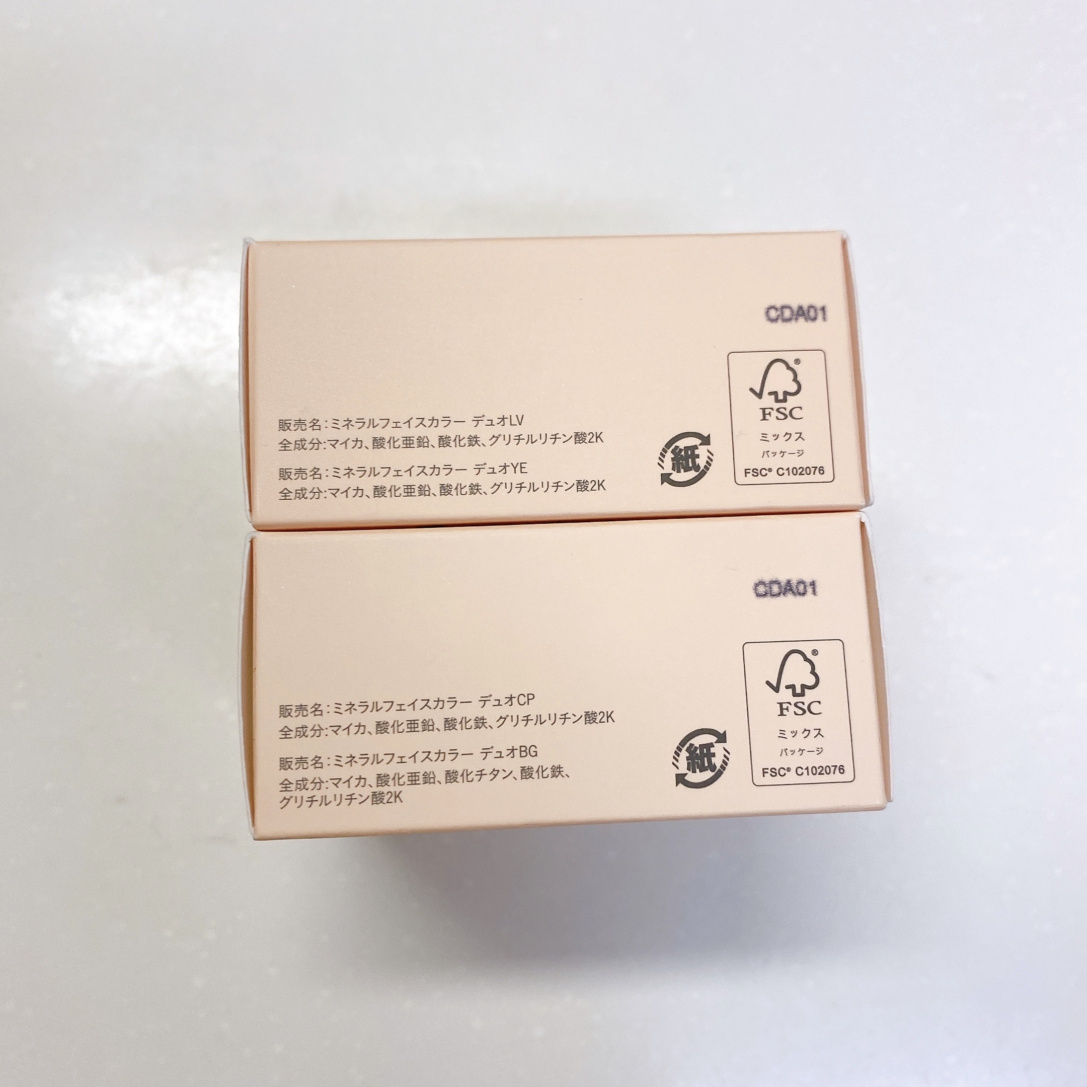 - <ブライトシフォン> ミネラルフェイスカラー デュオLV:マイカ、酸化亜鉛、酸化鉄、グリチルリチン酸2K ミネラルフェイスカラー デュオYE:マイカ、酸化亜鉛、酸化鉄、グリチルリチン酸2K <ロージーコットン> ミネラルフェイスカラー デュオCP:マイカ、酸化亜鉛、酸化鉄、グリチルリチン酸2K ミネラルフェイスカラー デュオBG:マイカ、酸化亜鉛、酸化チタン、酸化鉄、グリチルリチン酸2K