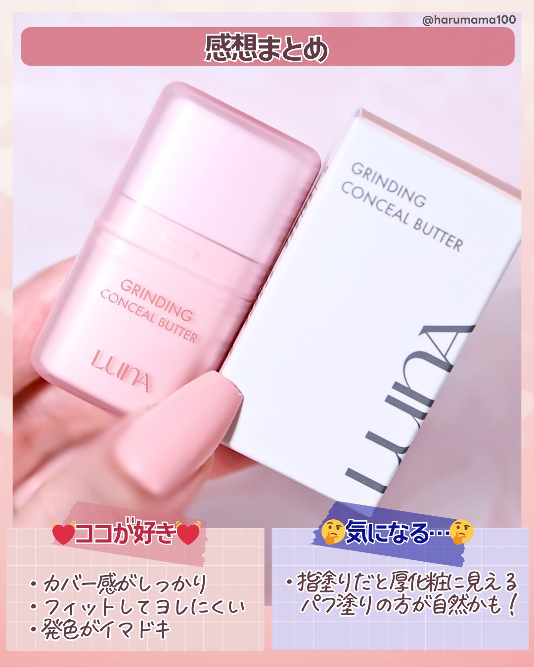 新感覚❕削って使うコンシーラー✨ ベースメイクで話題の〈LUNA〉から新作コンシーラーが誕生しました👏🏻💕 最初は固めのテクスチャーですが、バターのようにとろけて柔らかくなって塗りやすいです🙆🏻♀️ ヒアルロン酸、コラーゲン、ナイアシンアミド、ツボクサ含有で、油水分バランスケアできちゃうのすごすぎる🥹💖