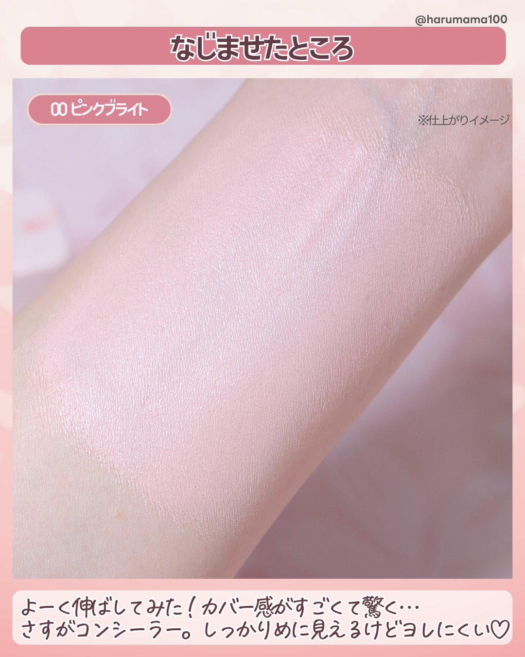 - <00 ピンクブライト> トリ(カプリル酸/カプリン酸)グリセリル、オクチルドデカノール、ヤシ油脂肪酸デシル、ダイマージリノール酸水添ヒマシ油、ポリブテン、合成ワックス、ヒマワリ種子ロウ、ラウリン酸ヘキシル、リンゴ種子油、イソステアリン酸ソルビタン、ポリヒドロキシステアリン酸、ツバキ種子油、シリカ、パルミチン酸エチルヘキシル、ミリスチン酸イソプロピル、イソステアリン酸、レシチン、ステアラルコニウムヘクトライト、ポリリシノレイン酸ポリグリセリル-3、香料、ジミリスチン酸Al、炭酸プロピレン、(ビニルジメチコン/メチコンシルセスキオキサン)クロスポリマー、カプリリルグリコール、カプリル酸グリセリル、加水分解ヒアルロン酸、マデカッソシド、ナイアシンアミド、PCA亜鉛、水、グリセリン、1,2-ヘキサンジオール、水溶性コラーゲン、酸化チタン、マイカ、酸化鉄 <01 サーモンベージュ> トリ(カプリル酸/カプリン酸)グリセリル、オクチルドデカノール、ヤシ油脂肪酸デシル、ダイマージリノール酸水添ヒマシ油、ポリブテン、合成ワックス、ヒマワリ種子ロウ、ラウリン酸ヘキシル、リンゴ種子油、イソステアリン酸ソルビタン、ポリヒドロキシステアリン酸、ツバキ種子油、シリカ、レシチン、パルミチン酸エチルヘキシル、ミリスチン酸イソプロピル、イソステアリン酸、ステアラルコニウムヘクトライト、ポリリシノレイン酸ポリグリセリル-3、香料、炭酸プロピレン、(ビニルジメチコン/メチコンシルセスキオキサン)クロスポリマー、ジミリスチン酸Al、カプリリルグリコール、カプリル酸グリセリル、加水分解ヒアルロン酸、マデカッソシド、ナイアシンアミド、PCA亜鉛、水、グリセリン、1,2-ヘキサンジオール、水溶性コラーゲン、酸化チタン、マイカ、酸化鉄 <02 アイボリー> トリ(カプリル酸/カプリン酸)グリセリル、オクチルドデカノール、ヤシ油脂肪酸デシル、ダイマージリノール酸水添ヒマシ油、ポリブテン、合成ワックス、ヒマワリ種子ロウ、ラウリン酸ヘキシル、リンゴ種子油、イソステアリン酸ソルビタン、ポリヒドロキシステアリン酸、ツバキ種子油、シリカ、レシチン、パルミチン酸エチルヘキシル、ミリスチン酸イソプロピル、イソステアリン酸、ステアラルコニウムヘクトライト、ポリリシノレイン酸ポリグリセリル-3、香料、ジミリスチン酸Al、炭酸プロピレン、(ビニルジメチコン/メチコンシルセスキオキサン)クロスポリマー、カプリリルグリコール、カプリル酸グリセリル、加水分解ヒアルロン酸、マデカッソシド、ナイアシンアミド、PCA亜鉛、水、グリセリン、1,2-ヘキサンジオール、水溶性コラーゲン、酸化チタン、マイカ、酸化鉄 <03 ポーセリン> トリ(カプリル酸/カプリン酸)グリセリル、オクチルドデカノール、ヤシ油脂肪酸デシル、ダイマージリノール酸水添ヒマシ油、ポリブテン、合成ワックス、ヒマワリ種子ロウ、ラウリン酸ヘキシル、リンゴ種子油、イソステアリン酸ソルビタン、ポリヒドロキシステアリン酸、ツバキ種子油、シリカ、レシチン、パルミチン酸エチルヘキシル、ミリスチン酸イソプロピル、イソステアリン酸、ステアラルコニウムヘクトライト、ポリリシノレイン酸ポリグリセリル-3、香料、ジミリスチン酸Al、炭酸プロピレン、(ビニルジメチコン/メチコンシルセスキオキサン)クロスポリマー、カプリリルグリコール、カプリル酸グリセリル、加水分解ヒアルロン酸、マデカッソシド、ナイアシンアミド、PCA亜鉛、水、グリセリン、1,2-ヘキサンジオール、水溶性コラーゲン、酸化チタン、マイカ、酸化鉄