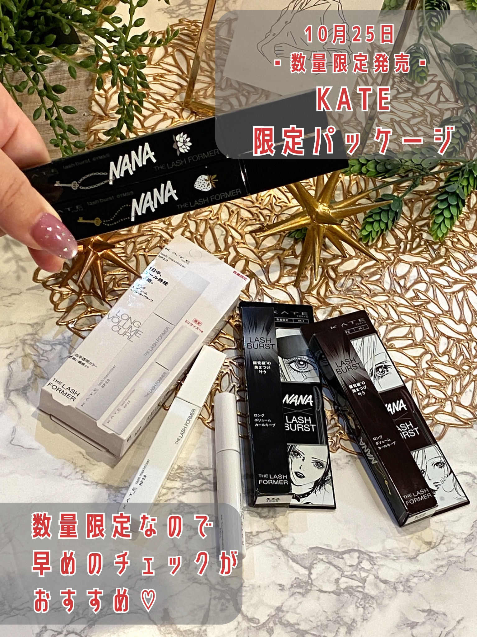 10月25日より数量限定発売のラッシュバースト×NANAコラボ限定パケがかわいすぎるꕀ🥹🎀ラッシュバーストでロング・ボリューム・カール、全部盛りの美まつ毛に⸝⋆ブラックはナナのようにインパクトのある目もと✦ฺ₊˚ブラウンはハチのように柔らかく...