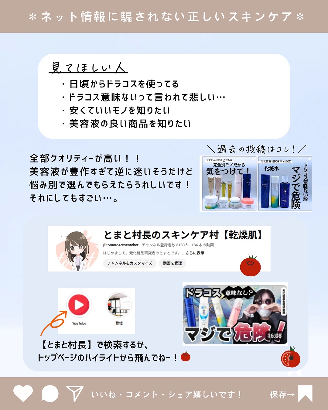 もっと見るとまと村長@化粧品研究者さんの人気クチコミ
