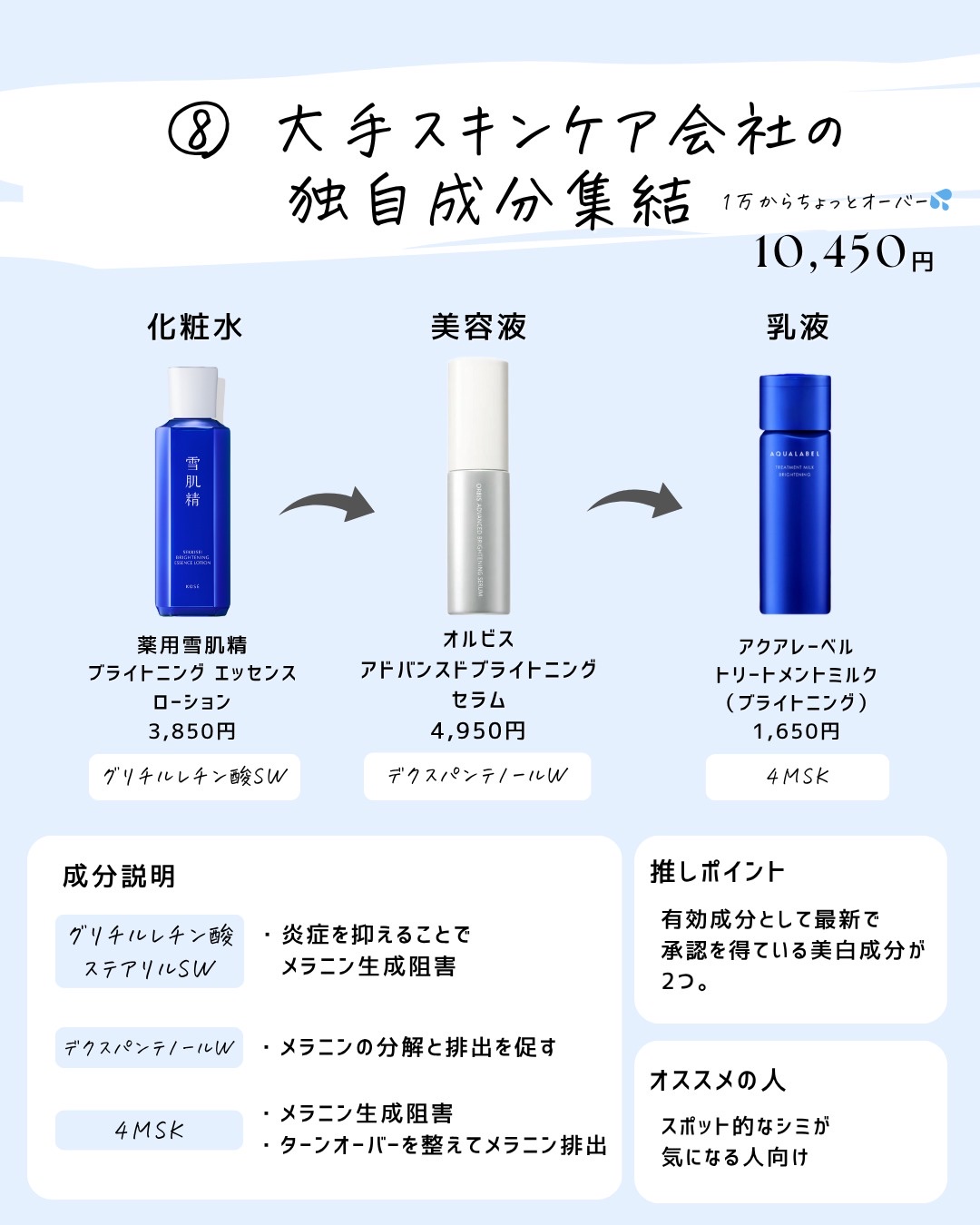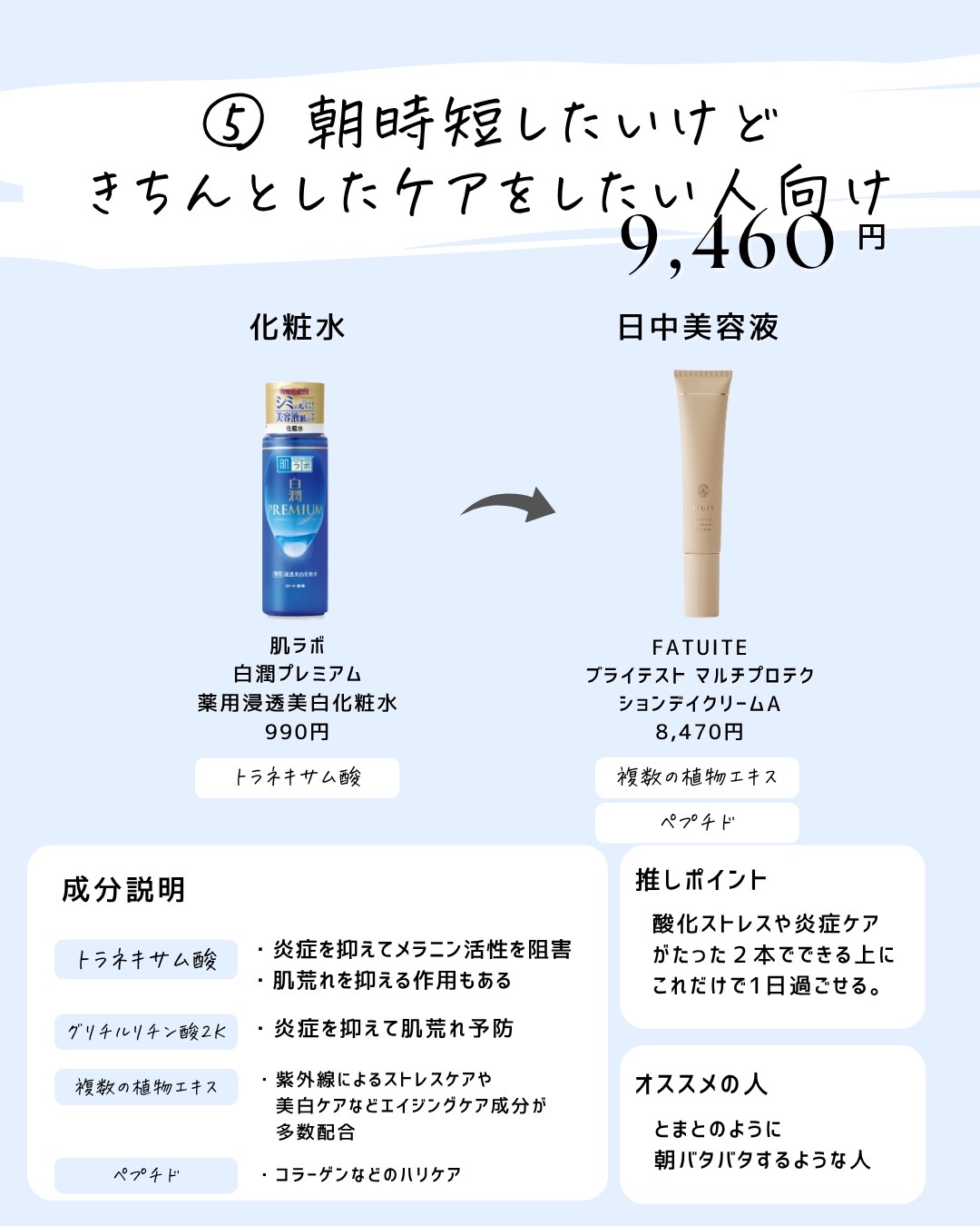 特定の有効成分を試してみたい。美容成分を試したい。そんな時は代用してもいいけど、それって似てるのかな?って思うときが正直ある。 同じ成分があっても実は濃度が違ったり、処方技術が違ったり。技術が違うと使用感も剤型も変わることがあることは知ったうえで使うといいかも。 せっかくプチプラ化粧品を買うならそれはそれで楽しんでほしいから是非念頭にいれてほしいな!!