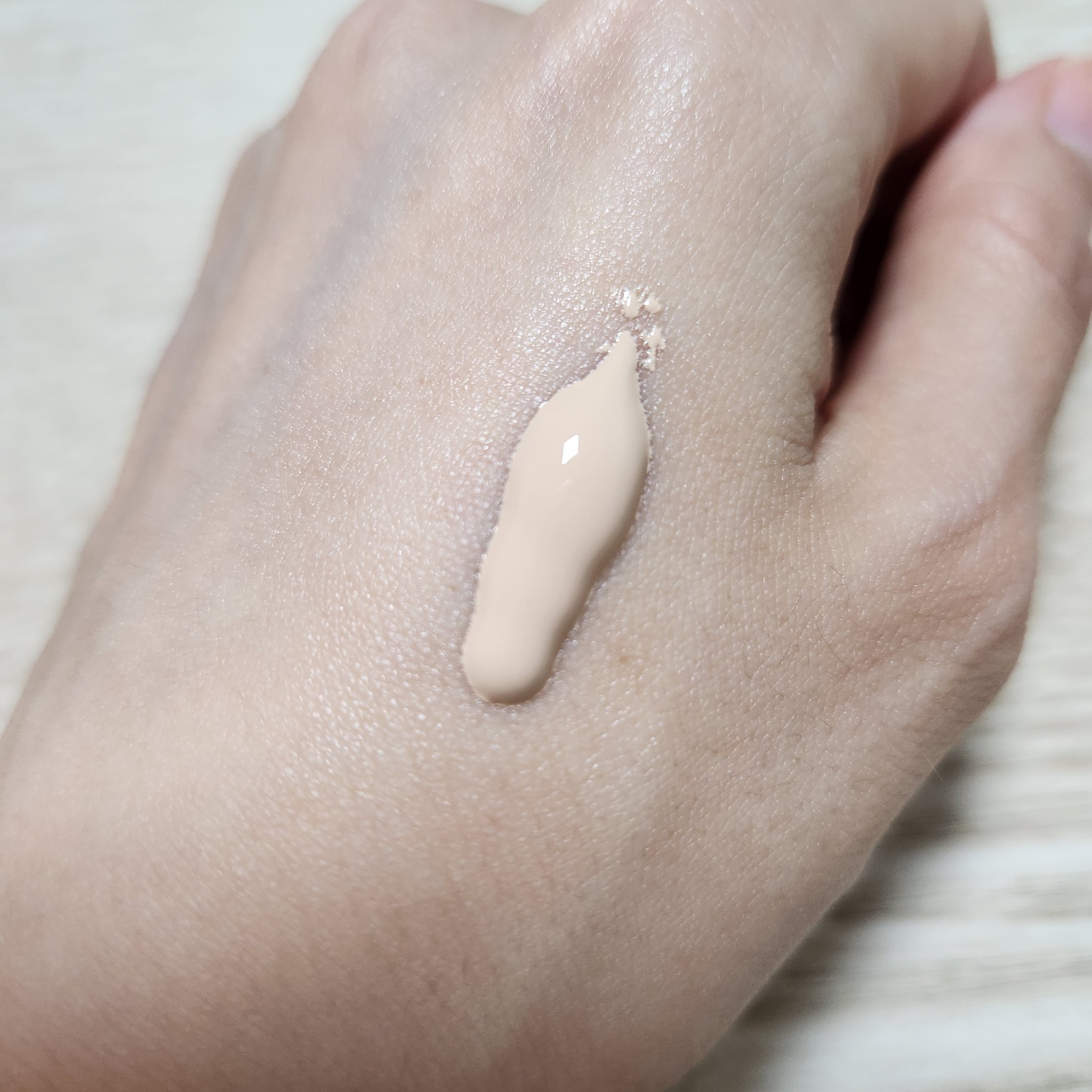テクスチャはわりとかためですがスポンジを使用すれば問題なくきれいに伸ばせます。 香りはほぼ無し。 肌のトーンを均一に整えてくれ自然にトーンアップしてくれます。 いつもと同じファンデを使ったのに今日は肌が綺麗に見える!と驚きました。♥️ 使用後しばらくたっても乾燥したり白く浮いたりすることがなく、使用感も良いのでこれから毎日使います。