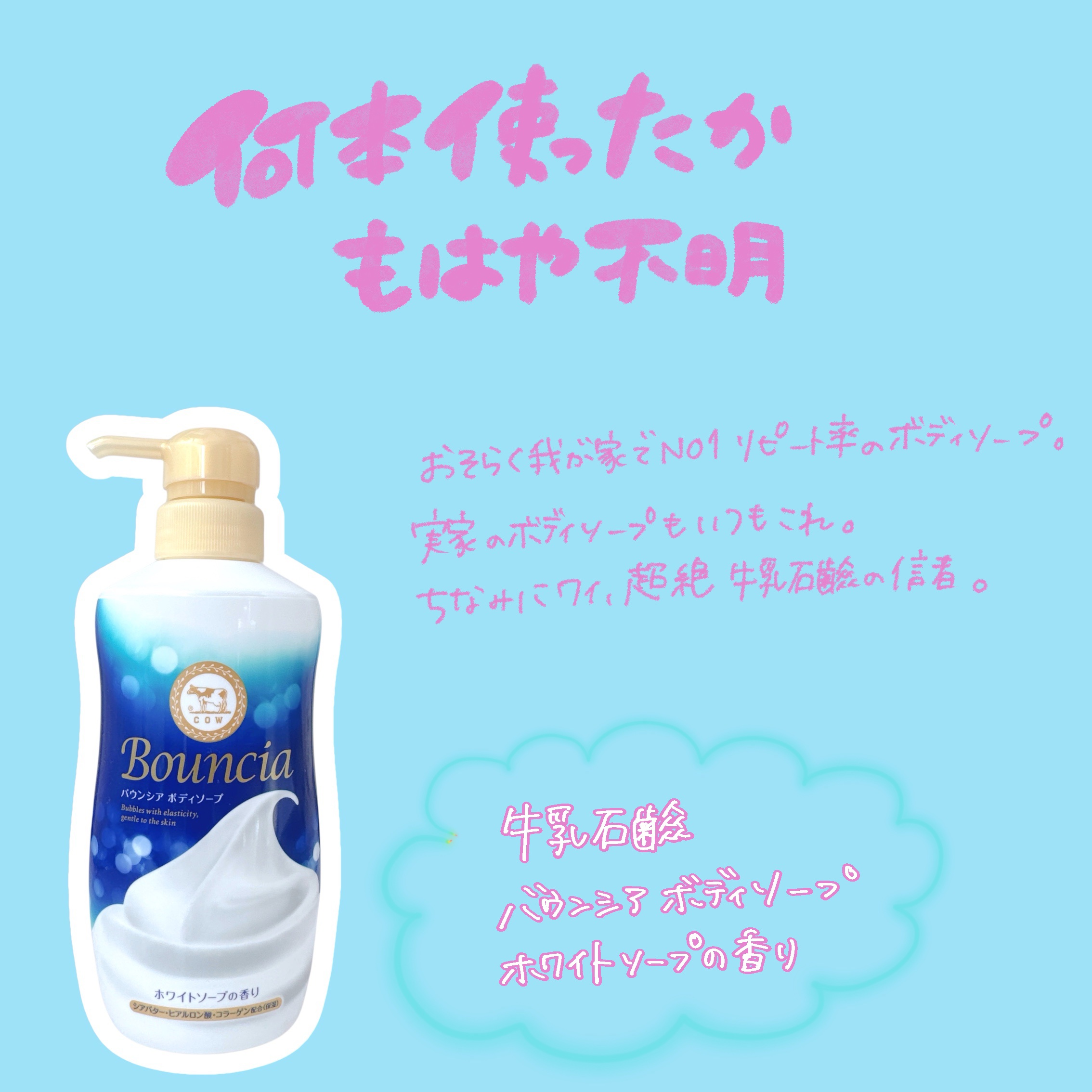 バウンシア🐮ボディソープホワイトソープの香り🫧牛乳石鹸市場最高の濃厚クリーム泡🫧泡立てると弾力あるもっちり泡に!クリーミーで弾力のある泡が全身をふんわり洗い上げ、しっとりなめらかな肌に整えてくれます🛁泡が濃厚だからお肌に摩擦なく使えるのも嬉し...