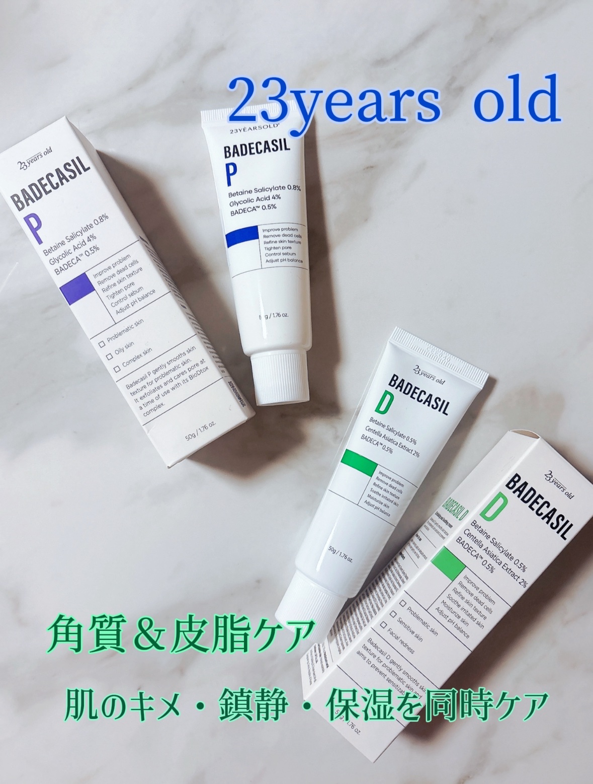 23yearsoldバデカシルシリーズ薬局でも話題の角質&肌トラブルケアアイテム💊韓国Optima薬局の薬剤師が処方した、敏感肌でも使える安心スキンケア2つに特徴があって使い分けることによって目指したい肌に近づける全顔使いのD/Pと集中ケアの...