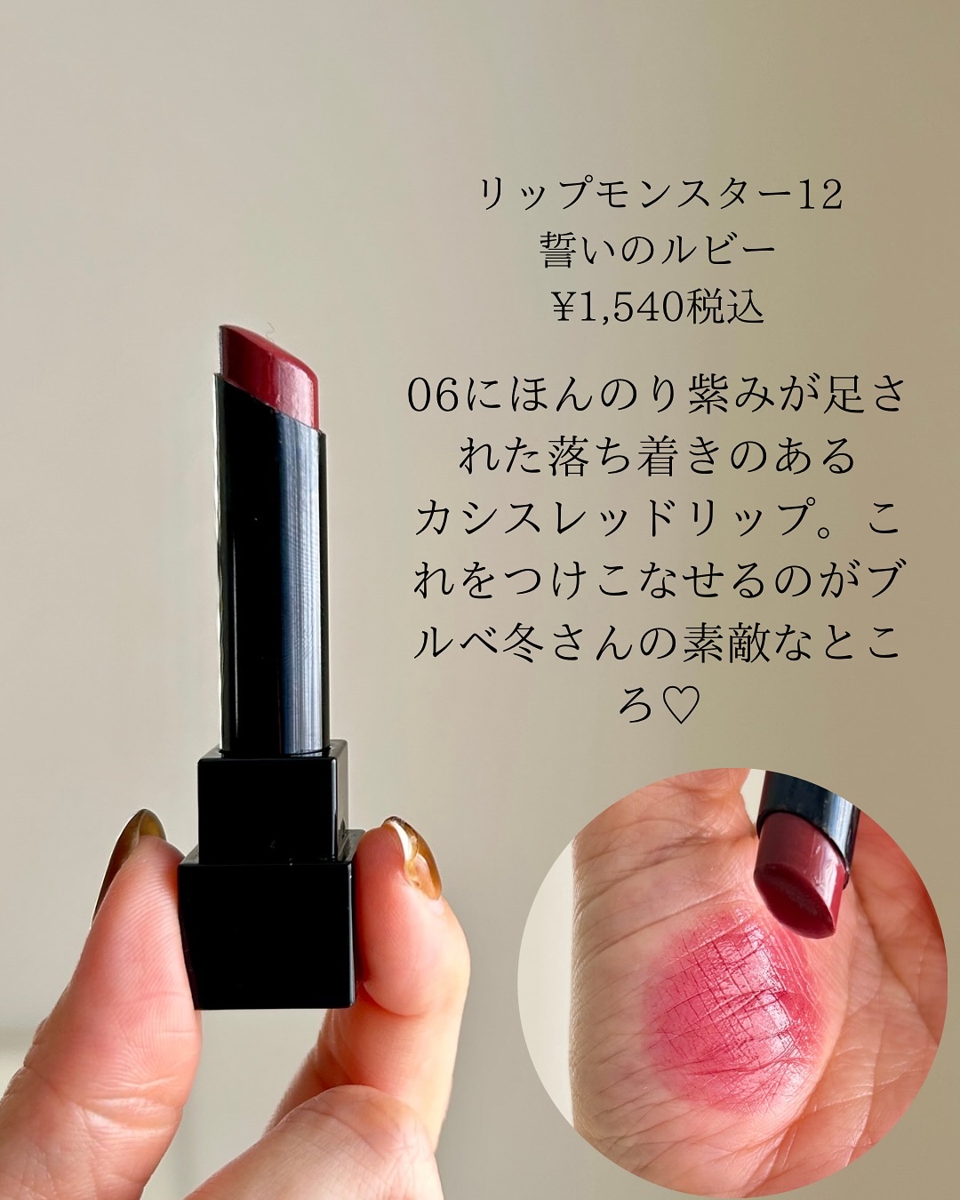 \パーソナルカラー別/ ブルベ〜ニュートラルカラーの リップモンスター13種比較です🙌🏻 01欲望の塊 ブルベ夏 02Pinkbanana 1stイエベ春2ndブルベ夏 黄み肌ブルベでもやや黄み強めに感じました! 05ダークフィグ ブルベ夏...