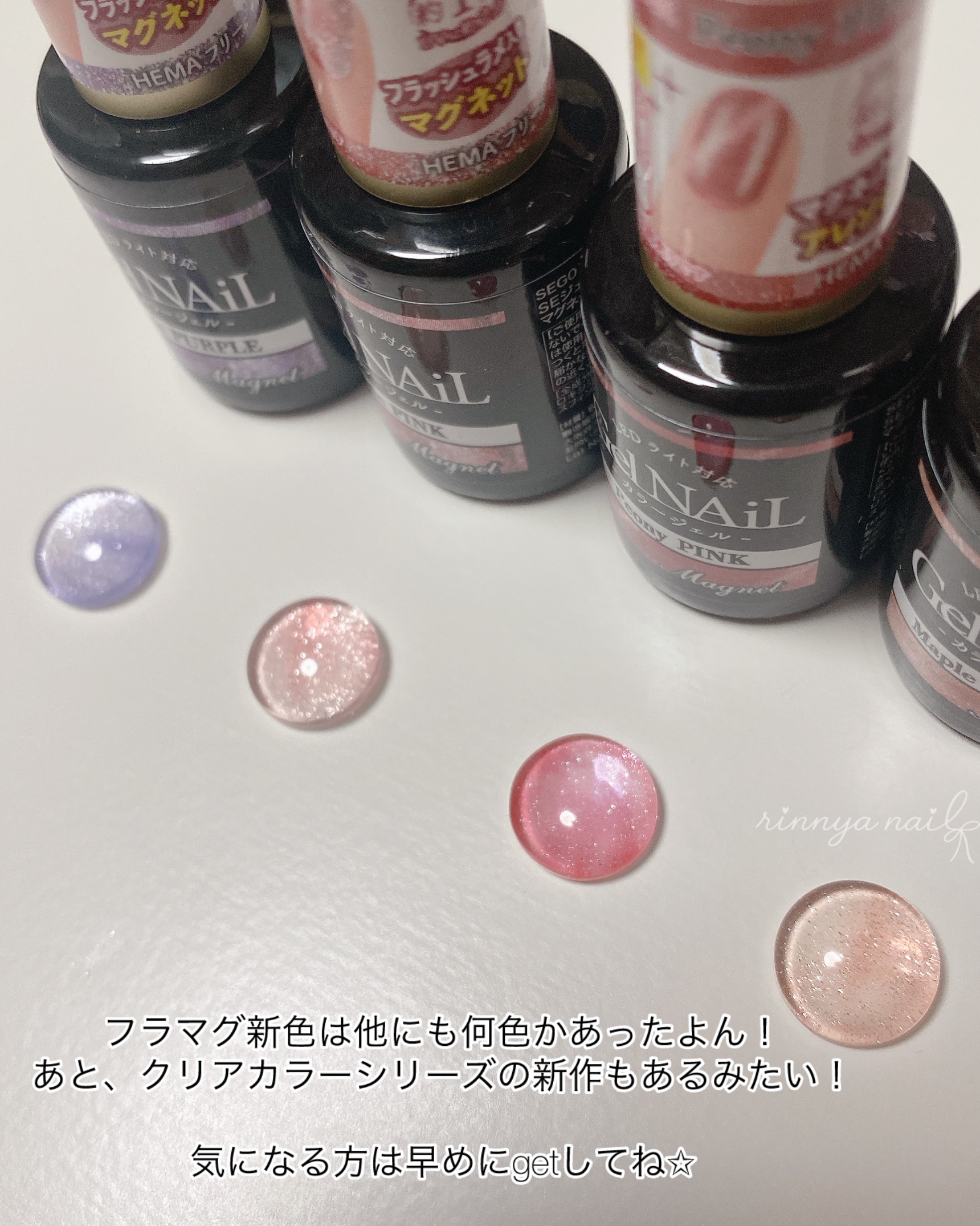 vol.4の方もたくさん買ったけど やっぱりvol.3の方が好みすぎた🩷 かわいすぎ🤦🏻♀️🩷 最推しは301だけどっ全部かわいいっっ!!! 全6色買って良かった🩷👏🏻 このジェル、再入荷しては売り切れ(もう何回目?) 楽天・Qoo10・Yahoo・Amazon等で販売はしてるから𝖭𝖠𝖨𝖫𝖳𝖮𝖶𝖭 をチェックして👀