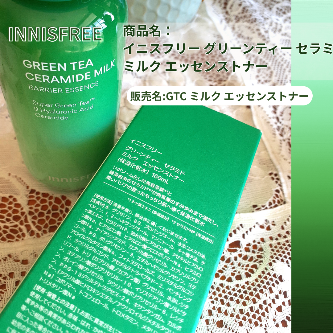 🍵うるもち緑茶ミルクトナー🍵innisfreeグリーンティーセラミドミルク エッセンストナー ¥2,420「リポソーム美容茶葉*1」と「セラミド*2」の新感覚*3浸透*4ミルク化粧水潤いバリアの満ち...
