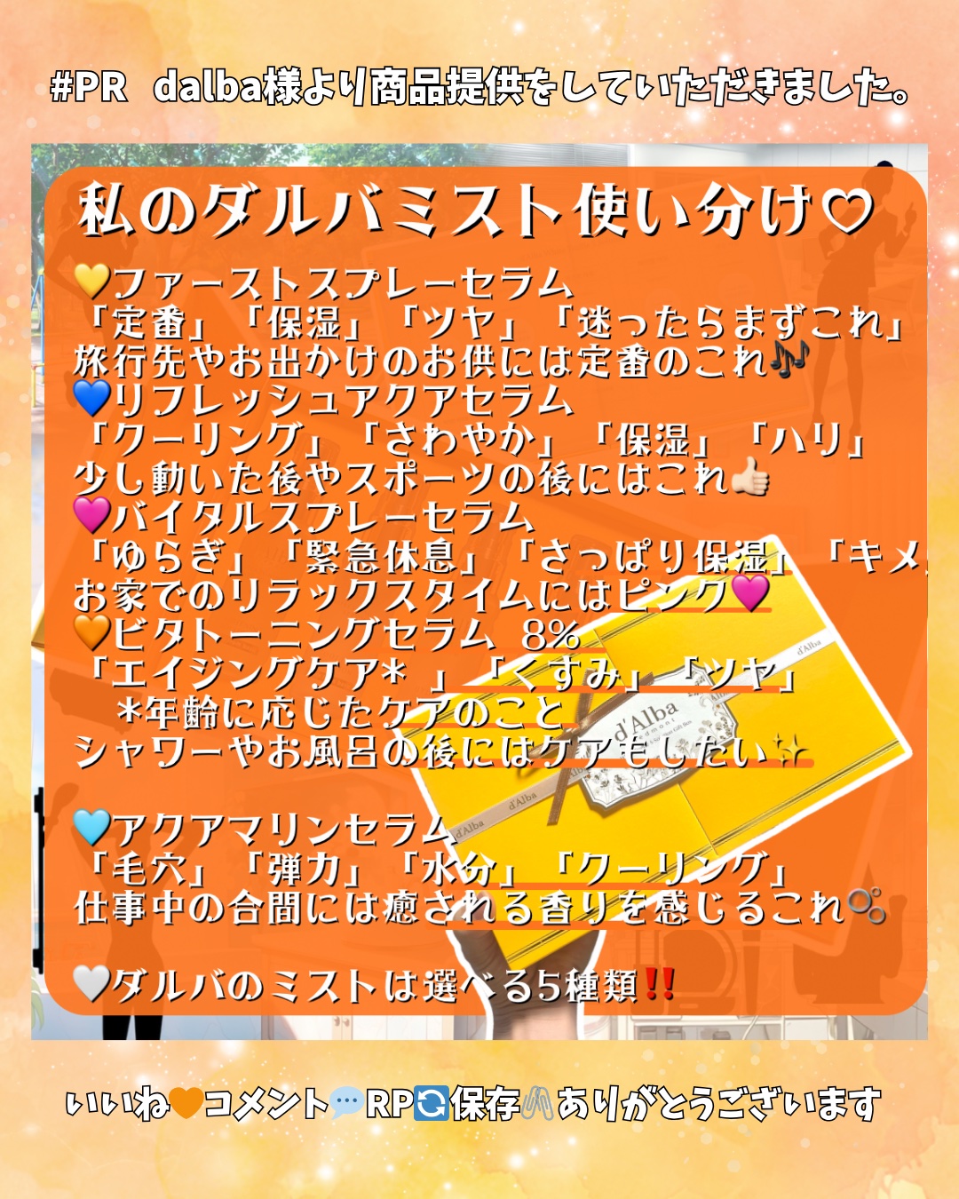 \\ダルバのミスト全5種悩み別使い分け//💛ファーストスプレーセラムダルバの大定番!ベタつかないのにしっかり保湿できる◎全ての肌タイプで使えるのが嬉しい✨🩷バイタルスプレーセラム敏感肌やゆらぎ肌に低刺激で静ケアができる!ピンクで乙女心がくすぐ...