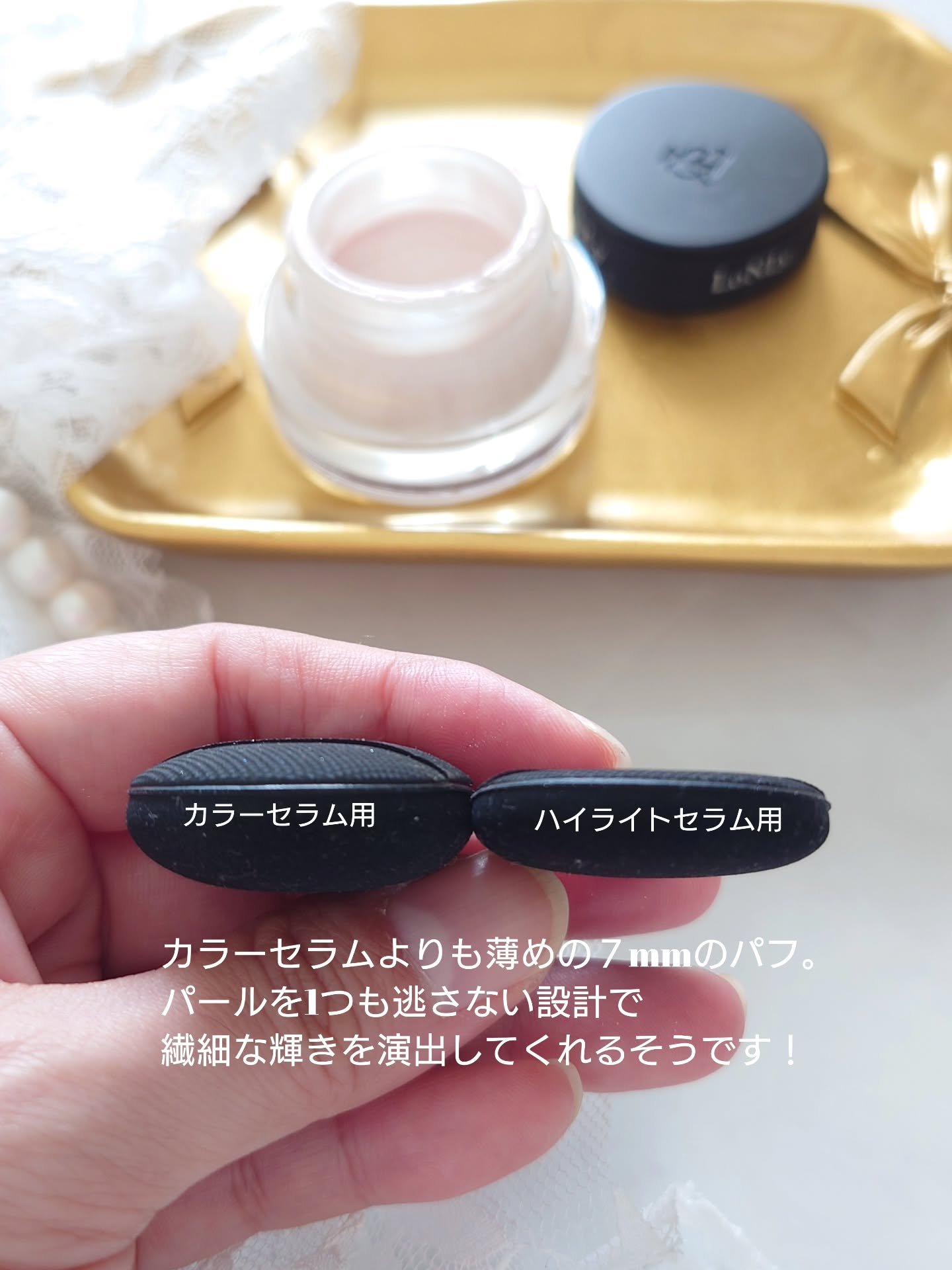 - 3種類の大きさのパールをブレンドし、使用用途に合わせた使い方ができるハイライトセラムです。専用のパフで塗布すると高級感のあるツヤと立体感のある仕上がりに、指で直接塗布すれば際立つツヤを演出し、特別なシーンにも最適です。