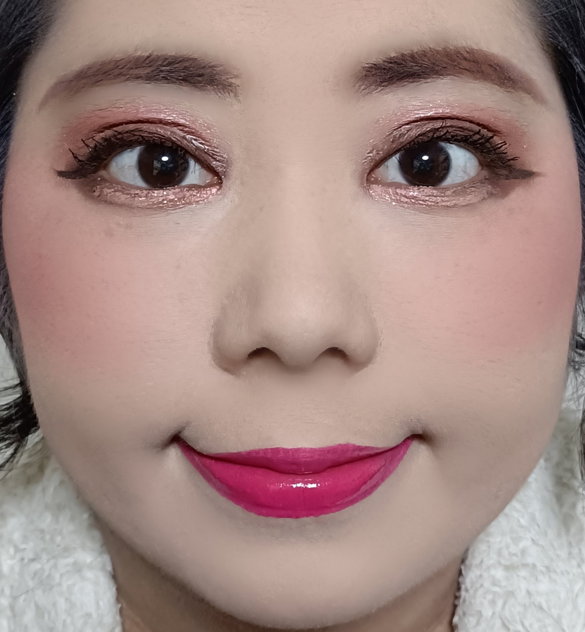 アリィー ニュアンスチェンジUV ジェル RSを、顔全体にまんべんなく塗ります。 RMK RMK ジェルクリーミィファンデーション 103を、顔全体にまんべんなく塗ります。 ジョンソンベビー ジョンソン ベビーパウダーを、顔全体にまんべんなく軽くはたきます。 THE BODY SHOP bronze shade warm glowを、両頬に塗ります。 KATE リフレクトミラーアイズ BR-1の締め色を、眉毛全体にまんべんなく塗ります。 URGLAM UR GLAMBLOOMING EYE COLOR PALETTE 01を、使用しました。 ちふれ リキッド アイライナー 筆ペンタイプ BK30 ブラックを、塗ります。 CEZANNE エアリーカールマスカラを、まつ毛全体にまんべんなく塗ります。 MAYBELLINE NEW YORK コロッサルボリュームエクスプレスを、まつ毛全体にまんべんなく塗ります。 MAYBELLINE NEW YORK SPステイ マットインク 135を、唇全体にまんべんなく塗ります。