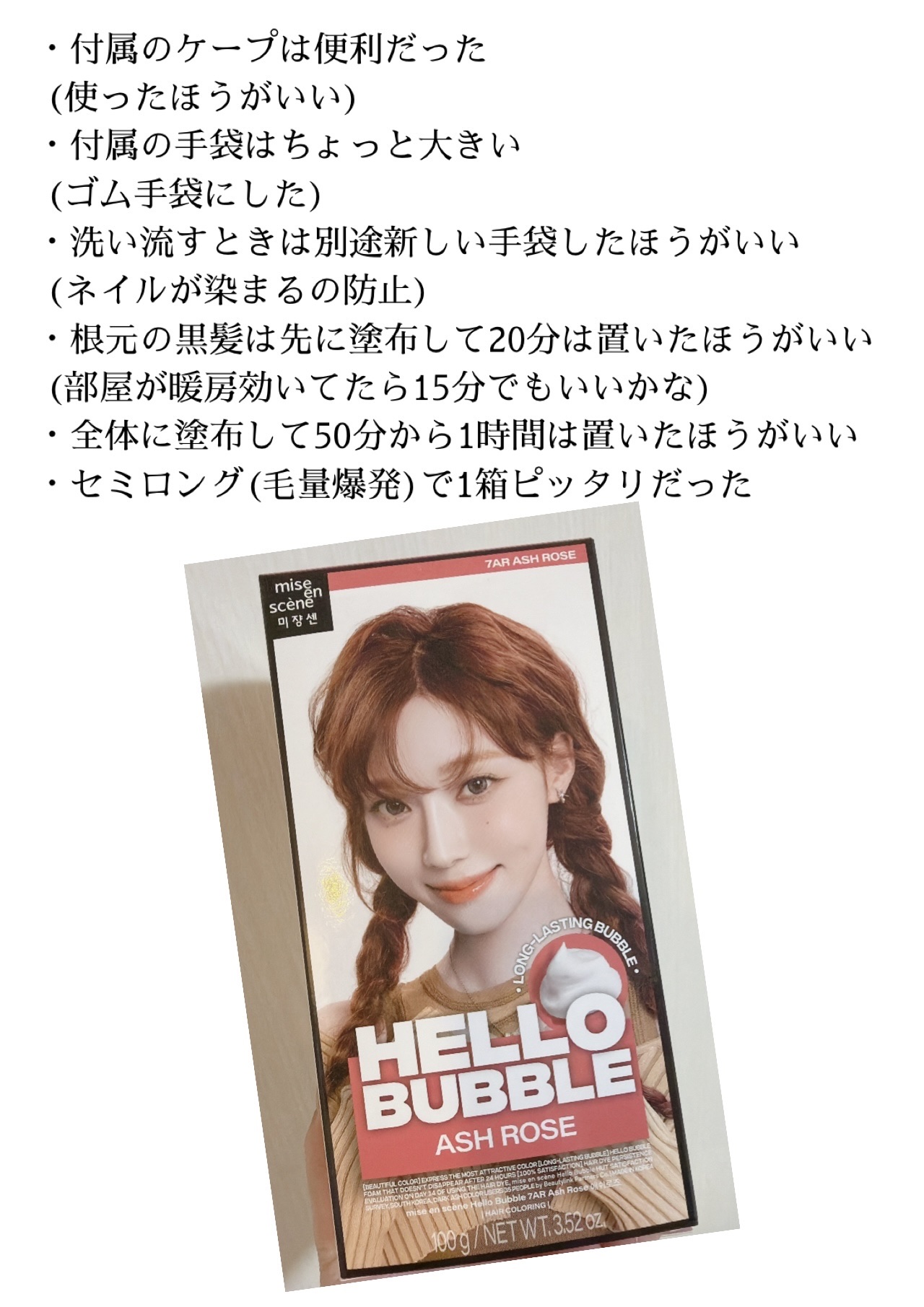 【miseensceneHelloBubbleFoamColor】内容量:1回分✮ディープボルドーローズゴールデンウィーク前にセルフカラーξ^.^ξ今回使用したのは、またまたミジャンセンのヘアカラー剤です。LIPS見ると綺麗に染めてる人が多く...