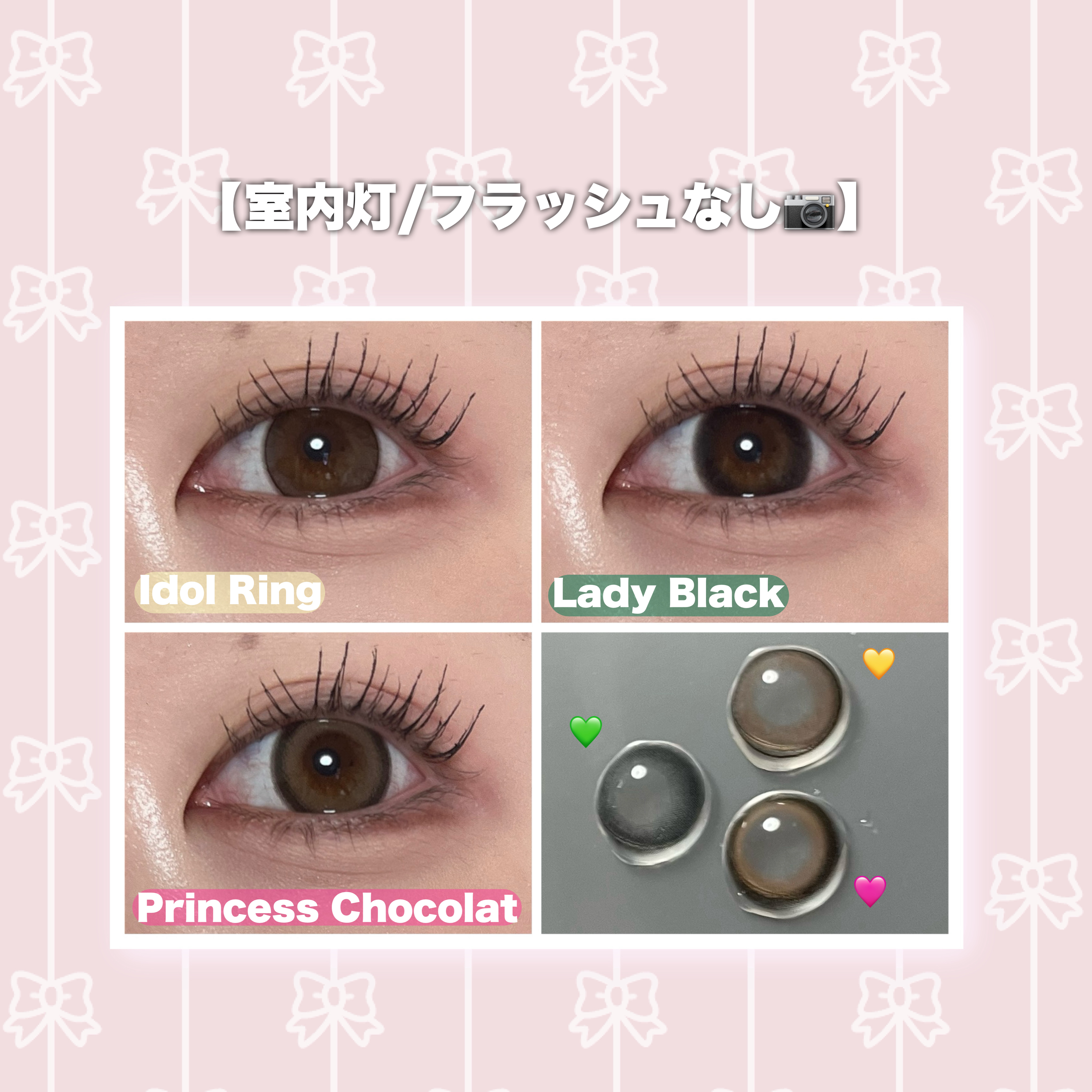 - ※2025年6月以降、商品パッケージ裏面・側面の一部表記を順次変更いたします。尚、これにかかる商品の交換・返品は承っておりません。 ヒロインの瞳の法則♡ ナチュラルなのにしっかり盛れるDIA14.5mm! ■ヒロインブラウン 透明感たっぷりなブラウンレンズ。瞳に馴染む色だからとってもナチュラル。 ■アイドルリング さりげない細フチとちゅるんブラウンがナチュラルに瞳を強調♡ ■ライアーピンク ピンクブラウンのフチとムラのあるデザインで立体感のあるきらきらな瞳を演出♡ ■レディブラック じゅわっとぼかした繊細なデザインで透明感に満ちた存在感のある瞳を演出♡ ■プリンセスショコラ しっかり太フチとあまくとろけるショコラブラウンでプリンセスみたいに愛される瞳に♡ ■スターグロー くりっと盛れる太フチとうるみツヤめく水光カラーで光を取りこむキラツヤな瞳に♡ ■Maria Ring(マリアリング) 絶妙細フチと白っぽ透明感グレージュでちょっぴり背伸びした余裕仕込みレンズ♡ ■Mermaid Ring(マーメイドリング) 絶妙太フチときらめき透明感マーメイドグレーでピュアにうるめく美少女な瞳に♡ カラーコンタクトレンズの不適正使用による眼障害の危険性等などがあります。 ●コンタクトレンズは高度管理医療機器です。不十分な洗浄・消毒など不適切なケアや、長時間・交換期間を超えた装用により、アレルギー性結膜炎、角膜感染症、角膜潰瘍等の重篤な眼障害が発生する危険性があります ●ご使用前に取扱説明書を確認してください 使用上の留意事項 ●眼科医院等を受診してからお求めください ●眼に異常を感じたら直ちにレンズ使用を中止し、お近くの眼科等で診察を受けてください ●医師の指示にしたがってご使用ください ●コンタクトレンズを装用する場合、自覚症状がなくても、眼科医院等での定期検査を受けてください ●レンズに不具合がある場合は使用しないでください