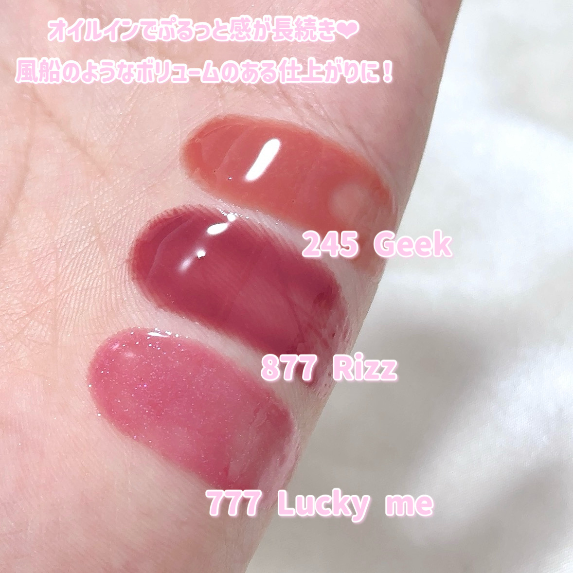 ❁✿✾✾✿❁︎❁✿✾✾✿❁︎Oddtype様の「アンシーンバルーンティント」3色を提供頂き、お試ししてみました🎈⸒⸒💗245ギーク💗777ラッキーミー💗877リズ(bestcolor)ボリュームとツヤ感を演出し、魅力的なニュートラルカラーがと...