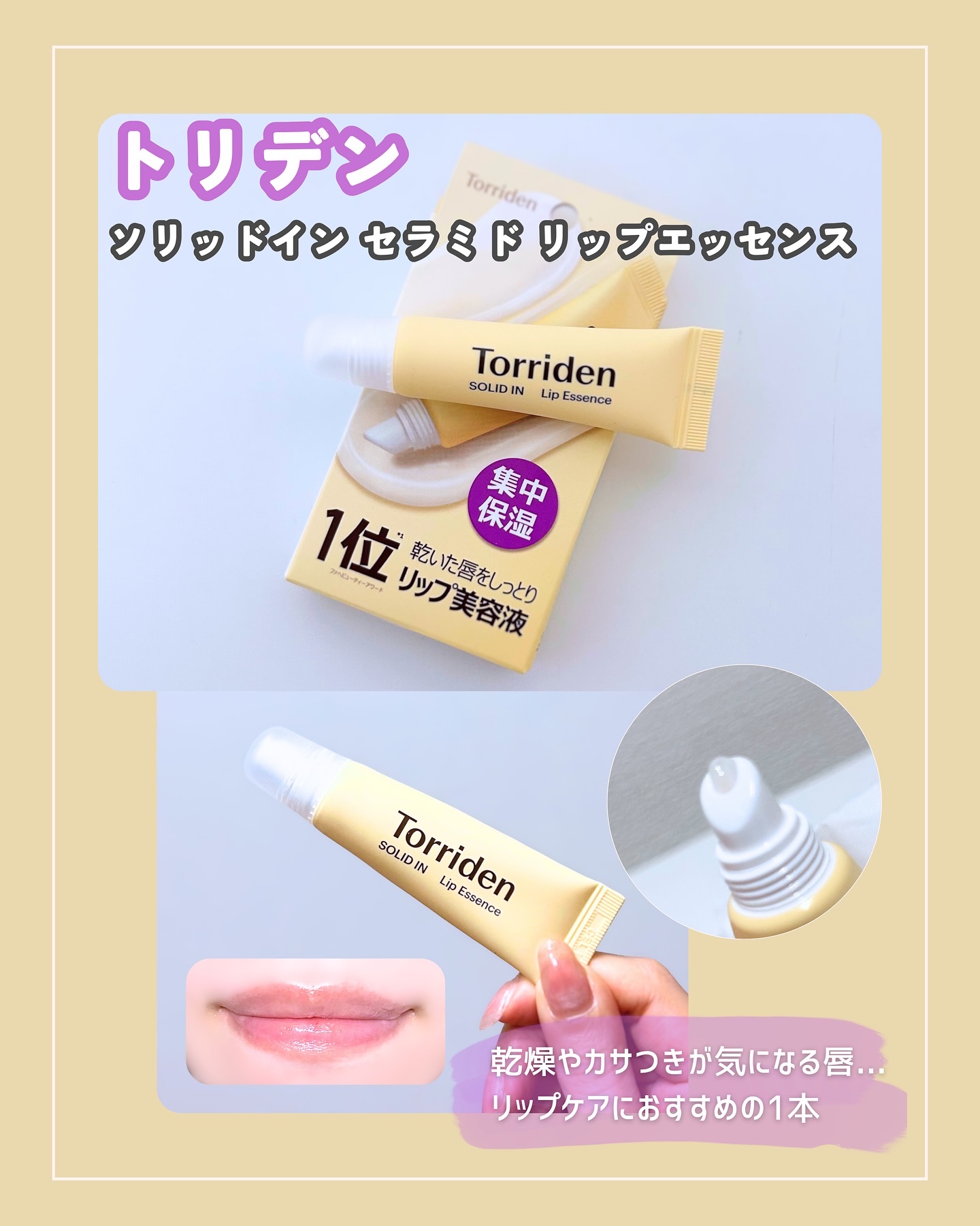 Torriden(トリデン)から登場した「ソリッドインセラミドリップエッセンス」は"保湿密着"で乾いた唇をしっとり包み込むリップエッセンス💋5種のセラミド*1と植物オイル*2、シアバター*3を組み合わせたリッチなうるおい処方でベタつかずにしっ...