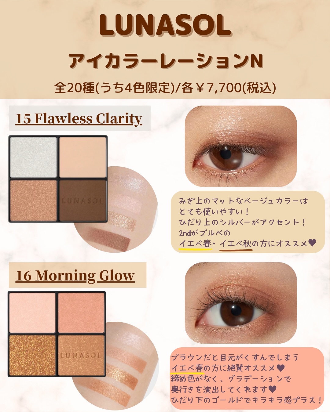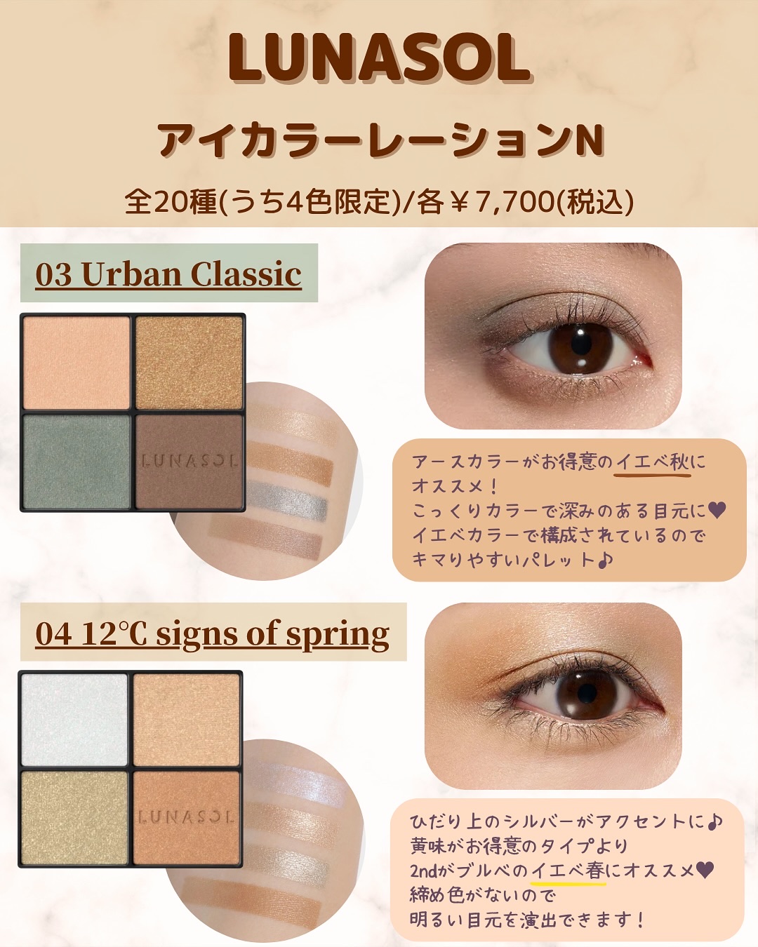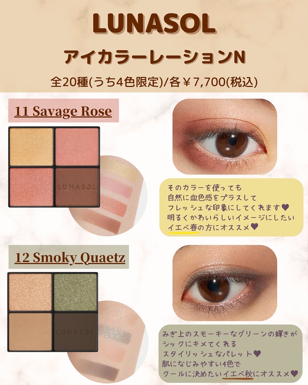 粉質の良さと上品な発色、豊富なカラバリで人気のルナソルアイシャドウパレット✨ イエベ春🌸▶︎11 13 14 15 18 19 20 21 22 23 ブルベ夏🫧▶︎02 03 12 13 21 24 柏駅徒歩5分のプライベートサロン ご予約 お問い合わせはプロフィールトップのURLへ