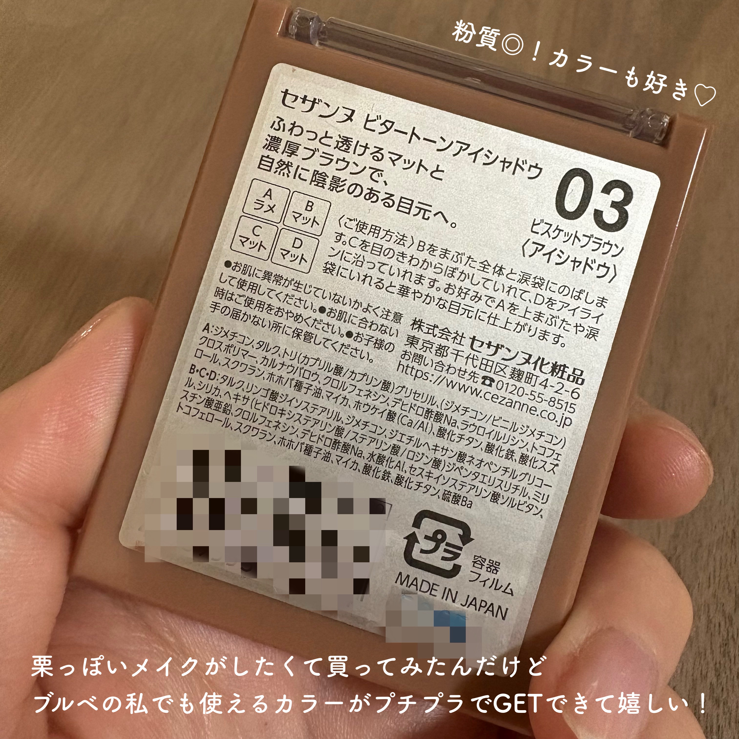 秋のブラウンは絶対コレ使いたくなる🍁❤︎︎︎︎❤︎CEZANNEビタートーンアイシャドウ03ビスケットブラウン¥748❤︎︎︎︎❤︎CEZANNEのビスケットブラウンが本当に可愛すぎるから皆に使って欲しい。どのカラーも可愛いブラウンマットでも...