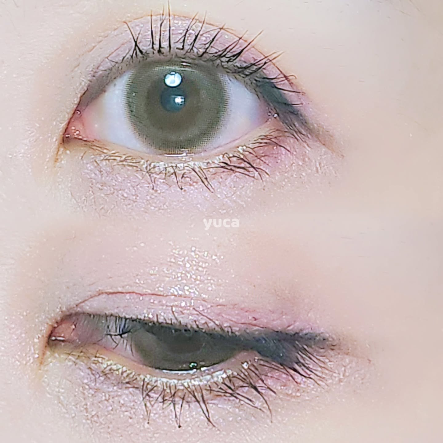 なんとなくだけど左側がブルベ寄り、右側がイエベ寄りの色味でニュートラルなパレットかなと思いました。 目元写真みると発色薄く見えるかなとおもいますが朝メイクして、直さず夜に撮ったのでこんな感じです。 カラコンはmimucoのブラウンフォンデュミムコのカラコンはどれも自然でかわいいです。