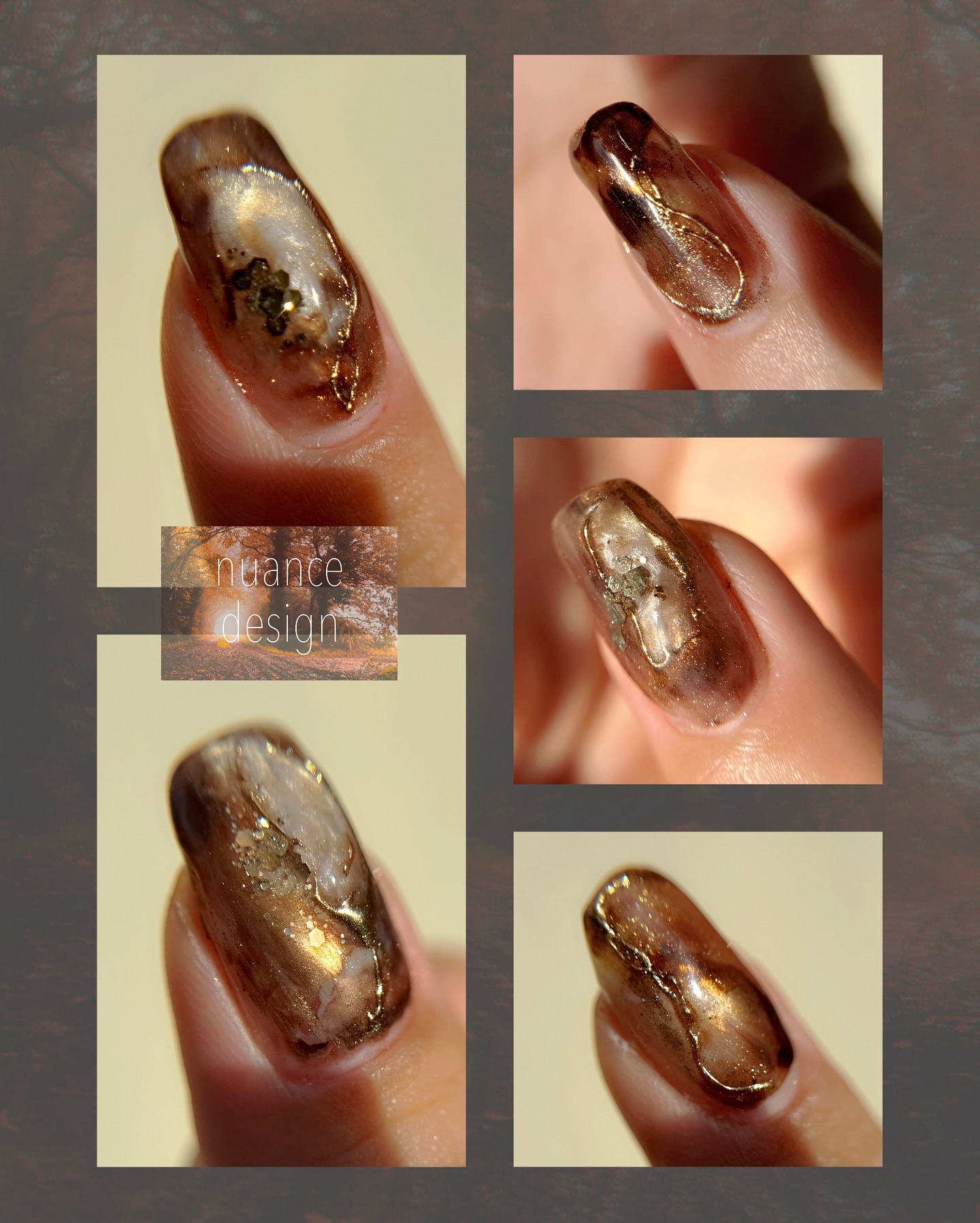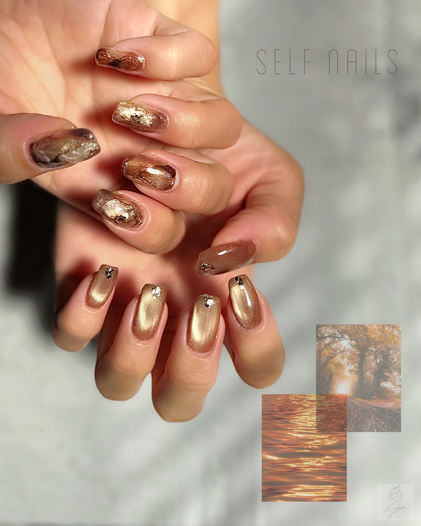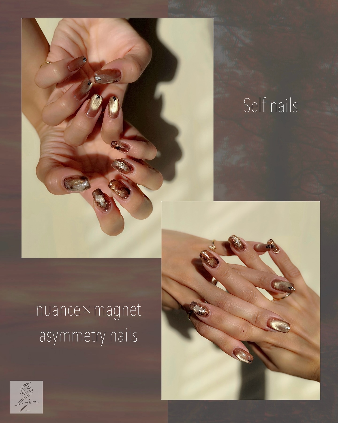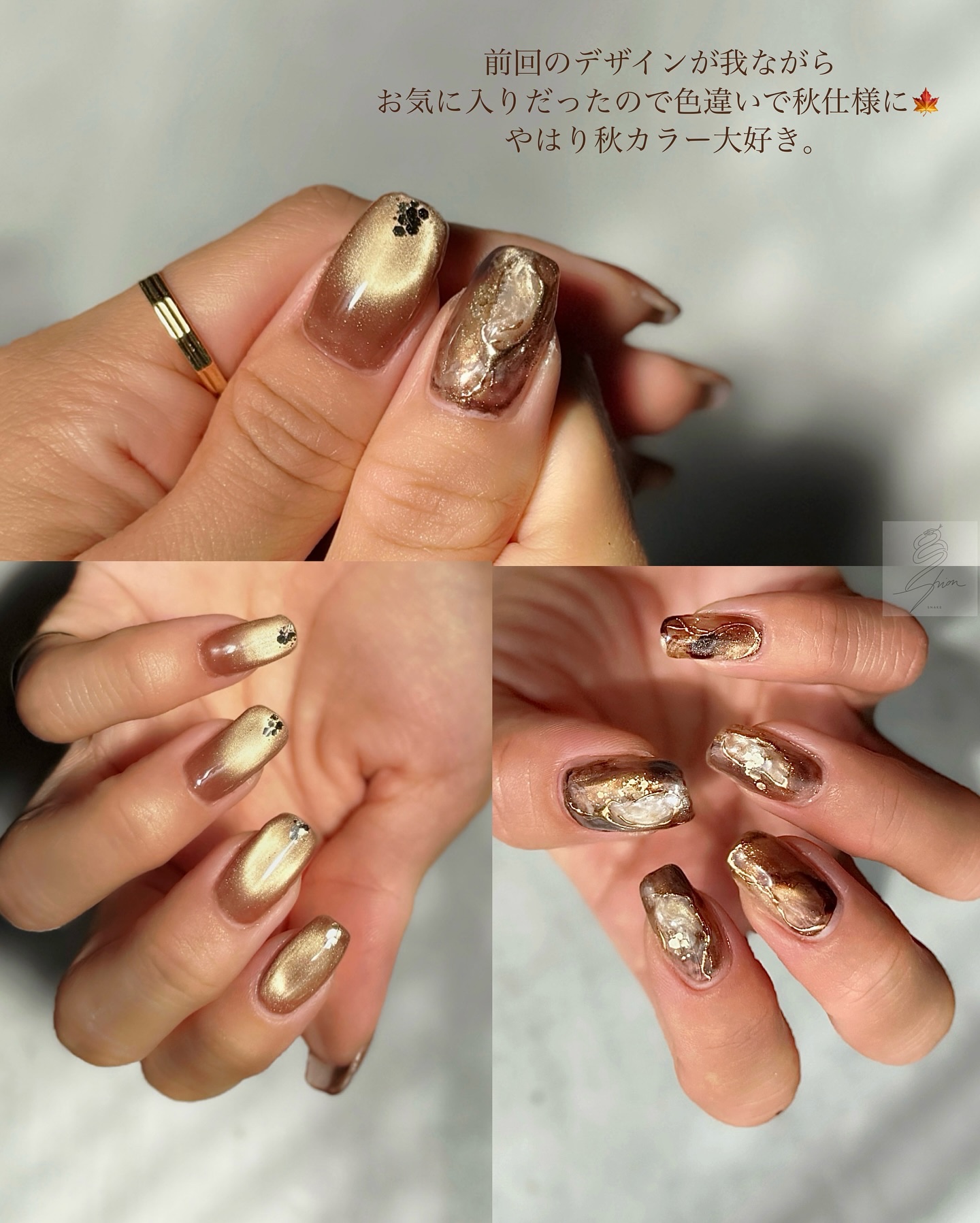 #大人のモカネイル図鑑🍂使用アイテム セリアジェルネイル シナモンベージュ ダークブラウン マグネット:バニラベージュ チェックシール パールパーツ チェックシールは貼るだけなので手書きが苦手な方にもおすすめです チップにだとさらに簡単 自爪...