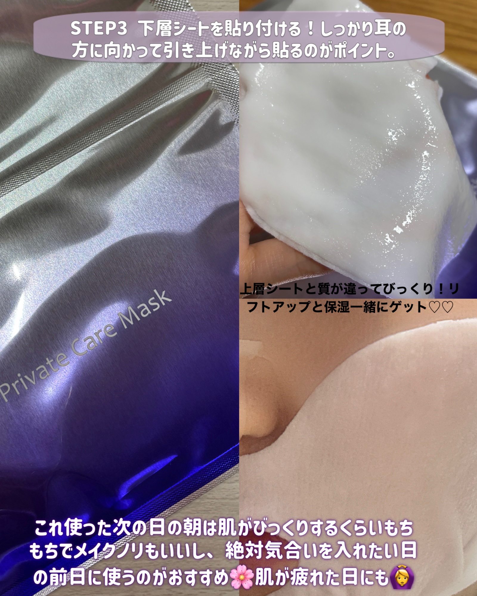 | ぷにぷにっとした厚みのある ゲルタイプのマスク。よく見るとゲルの中に 紫色っぽいパールがキラキラ はいってる…‼︎ | 詳細を見る |