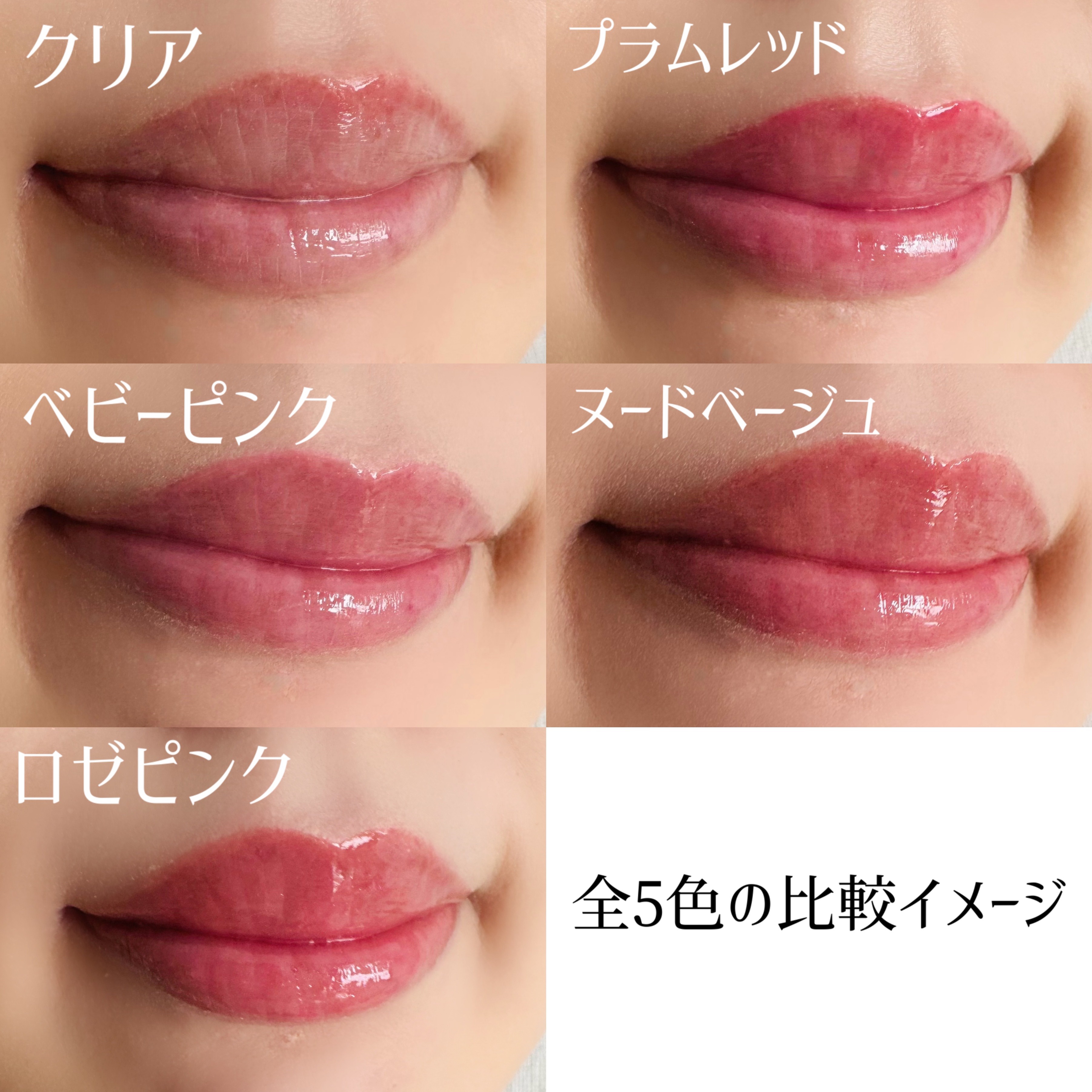 - <クリア> ダイマージリノール酸ダイマージリノレイル、(イソステアリン酸ポリグリセリル2/ダイマージリノール酸) コポリマー、ラノリン、オクチルドデカノール、ホホバ種子油、ジブチルラウロイルグルタミド、ミリスチン酸デキストリン、オリーブ果実油、ローヤルゼリーエキス、ハチミツ、パニリルブチル2、メントキシプロパンジオール、メントール、ハッカ葉油、レモン果皮油、ラバンデュラヒブリダ油、イタリアイトスギ葉/実/茎油、イソステアリン酸ソルビタン、ラブダナム油、ヒメマツバボタンエキス、ダマスクバラ花ロウ、ヤシ脂肪酸スクロース、パルミトイルトリペプチド-381、メトキシケイヒ酸エチルヘキシル、ペンチレングリコール、ポリシリコーン-15、t-ブチルメトキシジベンゾイルメタン、エチルヘキサン酸セテアリル、BG、水 <ヌードベージュ> ダイマージリノール酸ダイマージリノレイル、(イソステアリン酸ポリグリセリル2/ダイマージリノール酸) コポリマー、ラノリン、オクチルドデカノール、ホホバ種子油、ジブチルラウロイルグルタミド、ミリスチン酸デキストリン、メトキシケイヒ酸エチルヘキシル、ペンチレングリコール、トリイソステアリン酸ポリグリセリル-2、メントール、酸化チタン、ポリシリコーン-15、t-ブチルメトキシジベンゾイルメタン、酸化鉄、メントキシプロパンジオール、香料、赤104(1) 水酸化Al、バニリルブチル、オリーブ果実油、ハチミツ、ダマスクバラ花ロウ、エチルヘキサン酸セテアリル、BG、水、ハッカ葉油、レモン果皮油、ラバンデュラヒブリダ油、イタリアイトスギ葉/実/茎油、ヒメマツバボタンエキス、ラブダナム油、イソステアリン酸ソルビタン、ローヤルゼリーエキス、ヤシ脂肪酸スクロース、パルミトイルトリペプチド-38 <ベビーピンク> ダイマージリノール酸ダイマージリノレイル、イソステアリン酸ポリグリセリル2/ダイマージリノール酸)コポリマー、ラノリン、オクチルドデカノール、ホホバ種子油、ジブチルラウロイルグルタミド、ミリスチン酸デキストリン、メトキシケイヒ酸エチルヘキシル、ペンチレングリコール、メントール、トリイソステアリン酸ポリグリセリル-2、酸化チタン、ポリシリコーン-15、t-ブチルメトキシジベンゾイルメタン、メントキシプロパンジオール、香料、黄4、赤202、赤104 (1) 水酸化AI、赤201、バニリルブチル、オリーブ果実油、ダマスクバラ花ロウ、ハチミツ、エチルヘキサン酸セテアリル、BG、水、ハッカ葉油、レモン果皮油、ラバンデュラヒブリダ油、イタリアイトスギ葉/実/茎油、イソステアリン酸ソルビタン、ラブダナム油、ヒメマツバボタンエキス、ローヤルゼリーエキス、ヤシ脂肪酸スクロース、パルミトイルトリペプチド-38 <プラムレッド> ダイマージリノール酸ダイマージリノレイル、(イソステアリン酸ポリグリセリル2/ダイマージリノール酸)コポリマー、ラノリン、オクチルドデカノール、ホホバ種子油、ジブチルラウロイルグルタミド、ミリスチン酸デキストリン、メトキシケイヒ酸エチルヘキシル、ペンチレングリコール、メントール、トリイソステアリン酸ポリグリセリル-2、t-ブチルメトキシジベンゾイルメタン、ポリシリコーン-15、赤202、メントキシプロパンジオール、グンジョウ、香料、赤104(1)、黄4、バニリルプチル2、オリーブ果実油、ハチミツ、ダマスクバラ花ロウ、エチルヘキサン酸セテアリル、BG、水、ハッカ葉油、レモン果皮油、ラバンデュラヒブリダ油、イタリアイトスギ葉/実/莖油、ヒメマツバボタンエキス、ラブダナム油、イソステアリン酸ソルビタン、ローヤルゼリーエキス、ヤシ脂肪酸スクロース、パルミトイルトリペプチド-38 <ロゼピンク> ダイマージリノール酸ダイマージリノレイル、(イソステアリン酸ポリグリセリル2/ダイマージリノール酸) コポリマー、ラノリン、オクチルドデカノール、ホホバ種子油、ジブチルラウロイルグルタミド、ミリスチン酸デキストリン、オリーブ果実油、ローヤルゼリーエキス、ハチミツ、バニリルプチル2、メントキシプロパンジオール、メントール、ハッカ葉油、レモン果皮油、ラバンデュラヒブリダ油、イタリアイトスギ葉/実/莖油 イソステアリン酸ソルビタン、ラブダナム油、ヒメマツバボタンエキス、ダマスクバラ花ロウ、ヤシ脂肪酸スクロース、パルミトイルトリペプチド-381、メトキシケイヒ酸エチルヘキシル、ペンチレングリコール、トリイソステアリン酸ポリグリセリル-2、エチルヘキサン酸セテアリル、BG、水、酸化チタン、ホウケイ酸(Ca/Al)、ポリシリコー15、t-ブチルメトキシジベンゾイルメタン、合成フルオロフロゴパイト、黄4、赤202、赤104 (1) シリカ、赤201、酸化鉄、水酸化Al、酸化スズ、香料