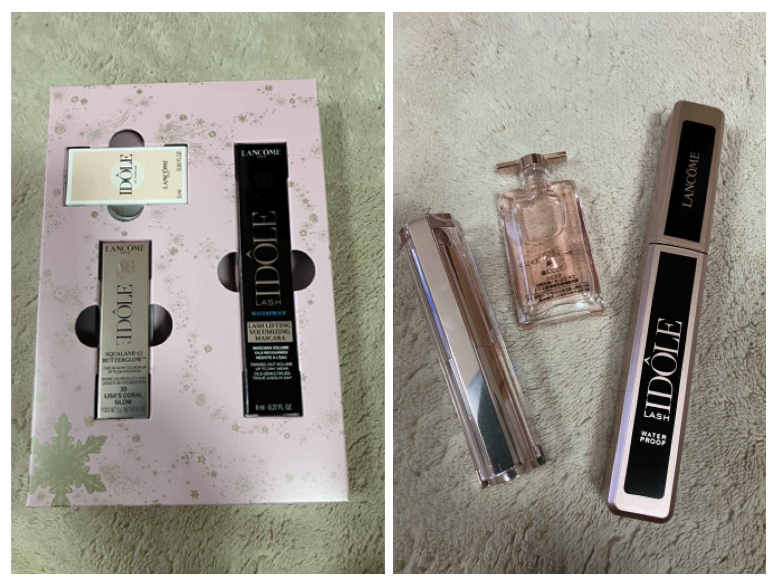 - 【2025クリスマスコフレ】<限定品> <セット内容> ・ジェニフィック アルティメ セラム 30mL(美容液/現品) ・UV エクスペール トーン アップ ローズ N 30mL(日やけ止め用乳液・メイクアップベース/現品) ・イドル カフェ クラッシュ(アイシャドウ/現品) ・ラッシュ イドル ウォータープルーフ 01 グロッシー ブラック(マスカラ/現品) ・イドル リップ バターグロウ 30 リサズ コーラル グロウ(口紅/現品) ・イドル オー ドゥ パルファン 5mL(オー ドゥ パルファン/試供品) ・ランコム オリジナルヴァニティ 発売日:2025年10月10日(金)