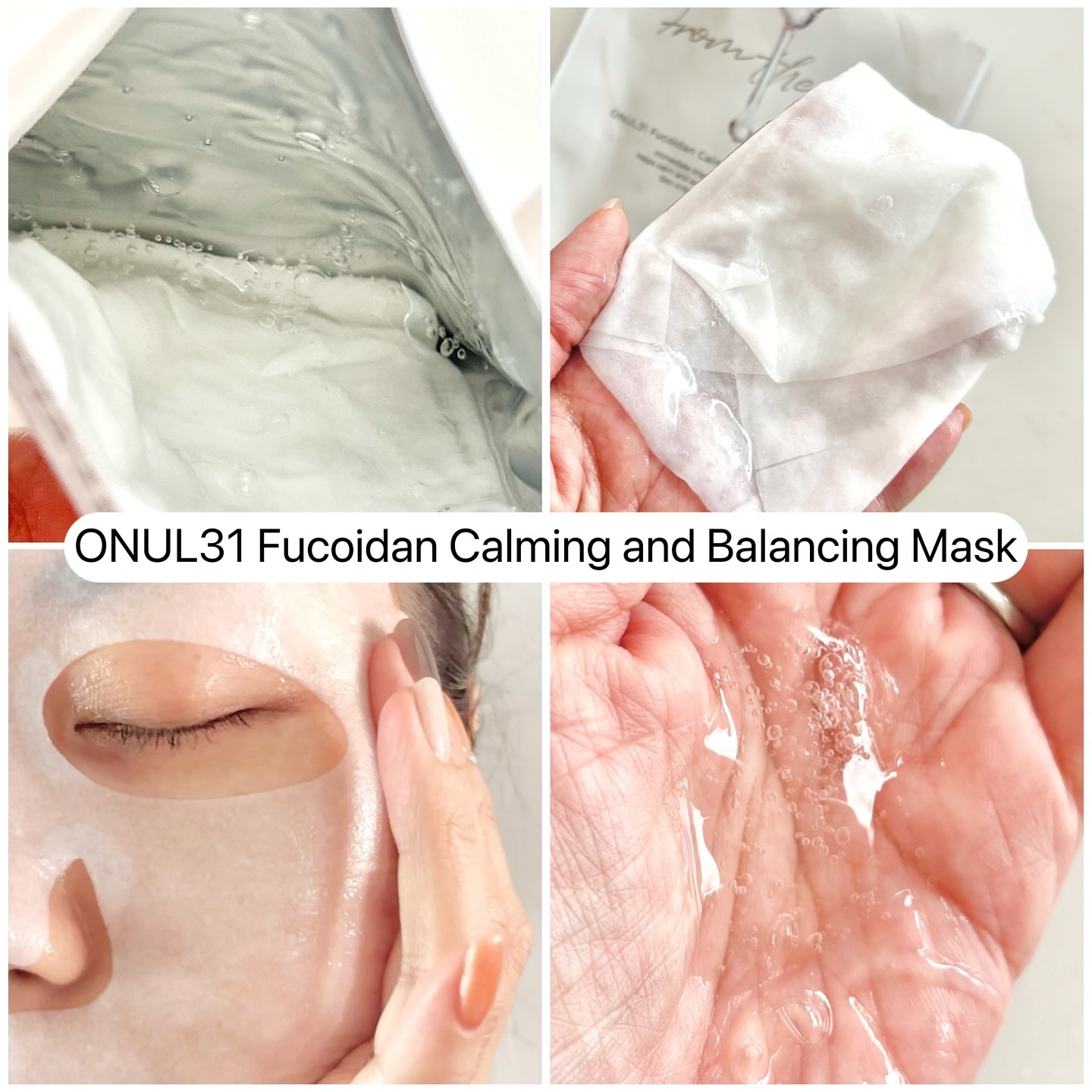 ✨ONUL31✨フコイダンカーミング&バランシングマスク(5枚入り)こんぶやワカメなどの海藻類が生み出した天然の保護成分✨『フコイダン』この、フコイダン成分がスゴイ‼️とろみがあるシートマスクがうるおいをたっぷり含んでいるので、外的刺激やゆら...