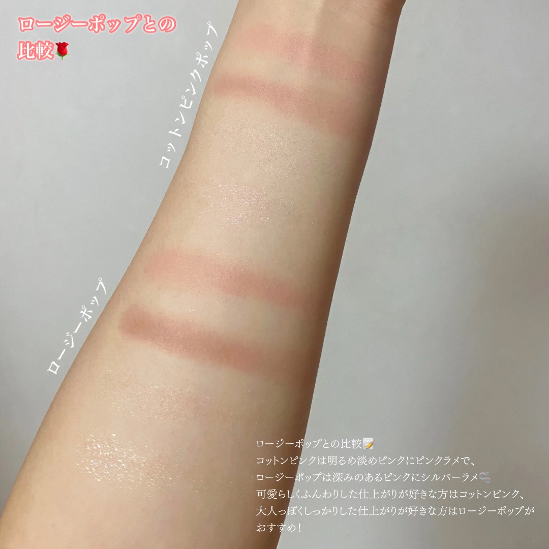 - <BE-1 シナモンポップ> タルク、ジエチルヘキサン酸ネオペンチルグリコール、リンゴ酸ジイソステアリル、ジメチコン、ワセリン、シリカ、ミリスチン酸亜鉛、カルナウバロウ、ジステアリン酸Al、セスキイソステアリン酸ソルビタン、トコフェロール、クロルフェネシン、デヒドロ酢酸Na、(+/-)アルミナ、グンジョウ、マイカ、酸化チタン、酸化鉄、水酸化Al、硫酸Ba、酸化スズ、ホウケイ酸(Ca/Al)、赤226 <BR-1 グレージュポップ> タルク、ジエチルヘキサン酸ネオペンチルグリコール、リンゴ酸ジイソステアリル、ジメチコン、ワセリン、シリカ、ミリスチン酸亜鉛、カルナウバロウ、ジステアリン酸Al、セスキイソステアリン酸ソルビタン、トコフェロール、クロルフェネシン、デヒドロ酢酸Na、(+/-)アルミナ、グンジョウ、マイカ、酸化チタン、酸化鉄、水酸化Al、硫酸Ba、酸化スズ、ホウケイ酸(Ca/Al)、赤226 <EX-4 コットンブルーポップ(限定)> タルク、ジエチルヘキサン酸ネオペンチルグリコール、リンゴ酸ジイソステアリル、ジメチコン、ワセリン、シリカ、ミリスチン酸亜鉛、カルナウバロウ、ジステアリン酸Al、セスキイソステアリン酸ソルビタン、トコフェロール、クロルフェネシン、デヒドロ酢酸Na、(+/-)マイカ、酸化チタン、ホウケイ酸(Ca/Al)、アルミナ、酸化鉄、グンジョウ、赤226、酸化スズ、水酸化Al、コンジョウ <EX-5 コットンピンクポップ(限定)> タルク、ジエチルヘキサン酸ネオペンチルグリコール、リンゴ酸ジイソステアリル、ジメチコン、ワセリン、シリカ、ミリスチン酸亜鉛、カルナウバロウ、ジステアリン酸Al、セスキイソステアリン酸ソルビタン、トコフェロール、クロルフェネシン、デヒドロ酢酸Na、(+/-)マイカ、酸化チタン、ホウケイ酸(Ca/Al)、アルミナ、酸化鉄、グンジョウ、赤226、酸化スズ、水酸化Al、コンジョウ <MV-1 モーヴポップ> タルク、ジエチルヘキサン酸ネオペンチルグリコール、リンゴ酸ジイソステアリル、ジメチコン、ワセリン、シリカ、ミリスチン酸亜鉛、カルナウバロウ、ジステアリン酸Al、セスキイソステアリン酸ソルビタン、トコフェロール、クロルフェネシン、デヒドロ酢酸Na、(+/-)アルミナ、グンジョウ、マイカ、酸化チタン、酸化鉄、水酸化Al、硫酸Ba、酸化スズ、ホウケイ酸(Ca/Al)、赤226 <OR-1 アプリコットポップ> タルク、ジエチルヘキサン酸ネオペンチルグリコール、リンゴ酸ジイソステアリル、ジメチコン、ワセリン、シリカ、ミリスチン酸亜鉛、カルナウバロウ、ジステアリン酸Al、セスキイソステアリン酸ソルビタン、トコフェロール、クロルフェネシン、デヒドロ酢酸Na、(+/-)アルミナ、グンジョウ、マイカ、酸化チタン、酸化鉄、水酸化Al、硫酸Ba、酸化スズ、ホウケイ酸(Ca/Al)、赤226 <OR-2 コーラルロゼポップ> タルク、ジエチルヘキサン酸ネオペンチルグリコール、リンゴ酸ジイソステアリル、ジメチコン、ワセリン、シリカ、ミリスチン酸亜鉛、カルナウバロウ、ジステアリン酸Al、セスキイソステアリン酸ソルビタン、トコフェロール、クロルフェネシン、デヒドロ酢酸Na、(+/-)マイカ、ホウケイ酸(Ca/Al)、酸化チタン、アルミナ、酸化鉄、グンジョウ、酸化スズ、水酸化Al <PK-1 ラズベリーロゼポップ> タルク、ジエチルヘキサン酸ネオペンチルグリコール、リンゴ酸ジイソステアリル、ジメチコン、ワセリン、シリカ、ミリスチン酸亜鉛、カルナウバロウ、ジステアリン酸Al、セスキイソステアリン酸ソルビタン、トコフェロール、クロルフェネシン、デヒドロ酢酸Na、(+/-)マイカ、ホウケイ酸(Ca/Al)、酸化チタン、アルミナ、酸化鉄、グンジョウ、酸化スズ、水酸化Al <RD-1 ロージーポップ> タルク、ジエチルヘキサン酸ネオペンチルグリコール、リンゴ酸ジイソステアリル、ジメチコン、ワセリン、シリカ、ミリスチン酸亜鉛、カルナウバロウ、ジステアリン酸Al、セスキイソステアリン酸ソルビタン、トコフェロール、クロルフェネシン、デヒドロ酢酸Na、(+/-)アルミナ、グンジョウ、マイカ、酸化チタン、酸化鉄、水酸化Al、硫酸Ba、酸化スズ、ホウケイ酸(Ca/Al)、赤226 <EX-1 ブラッドオレンジポップ(限定)> タルク、ジエチルヘキサン酸ネオペンチルグリコール、リンゴ酸ジイソステアリル、ジメチコン、ワセリン、シリカ、ミリスチン酸亜鉛、カルナウバロウ、ジステアリン酸Al、セスキイソステアリン酸ソルビタン、トコフェロール、クロルフェネシン、デヒドロ酢酸Na、(+/-)マイカ、酸化チタン、ホウケイ酸(Ca/Al)、アルミナ、酸化鉄、グンジョウ、水酸化Al、酸化スズ <EX-2 ホットレッドポップ(限定)> タルク、ジエチルヘキサン酸ネオペンチルグリコール、リンゴ酸ジイソステアリル、ジメチコン、ワセリン、シリカ、ミリスチン酸亜鉛、カルナウバロウ、ジステアリン酸Al、セスキイソステアリン酸ソルビタン、トコフェロール、クロルフェネシン、デヒドロ酢酸Na、(+/-)マイカ、酸化チタン、ホウケイ酸(Ca/Al)、アルミナ、酸化鉄、グンジョウ、水酸化Al、酸化スズ <EX-3 ウォ