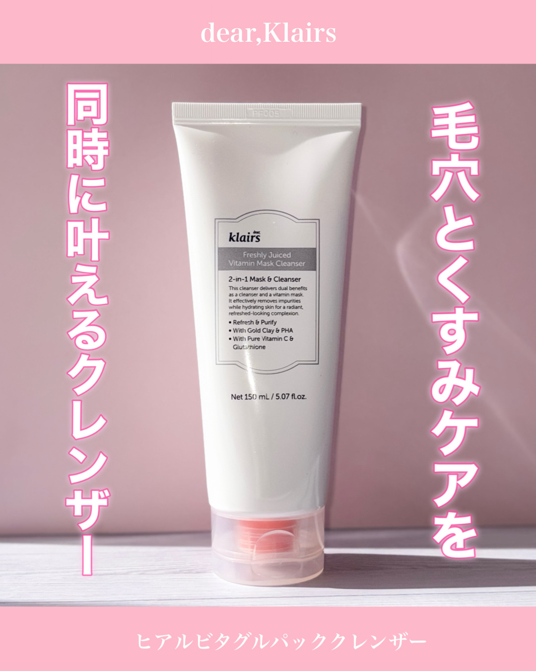 Klairsヒアルビタグルパッククレンザー試してみました。ディープクレンジング➕ブライトニングパックブラジルゴールドクレイでディープクレンジング。みかんの皮パウダーで毛穴の汚れをキレイに。PHA.ビタミンC、グルタチオン、ナイアシンアミドなど...