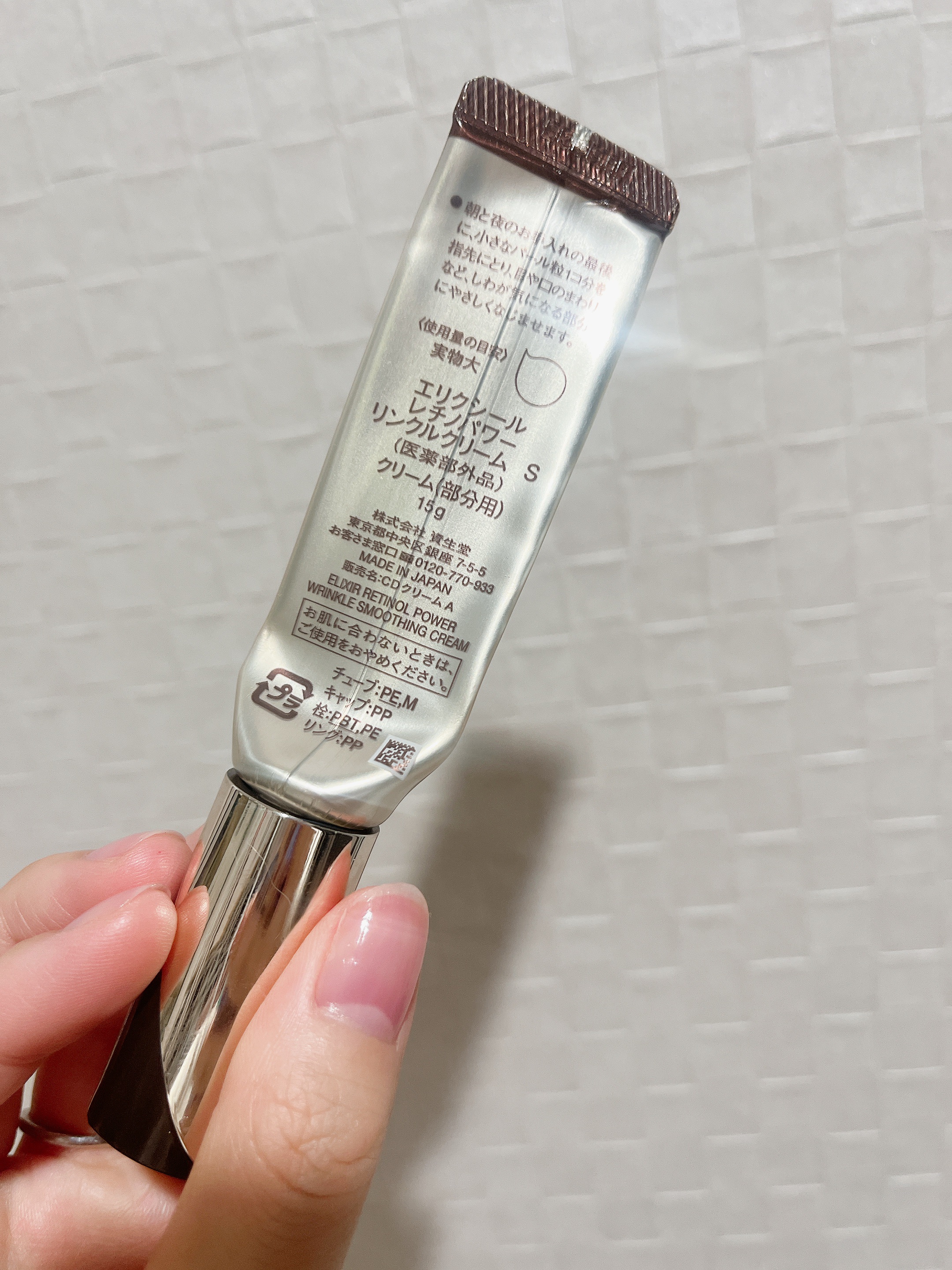 - <15g(S)> 有効成分 レチノール、酢酸DL-α-トコフェロール その他の成分 ヒマシ油、アジピン酸ジグリセリル混合脂肪酸エステル、ジピバリン酸トリプロピレングリコール、マヨラナエキス、精製水、テトラ2-エチルヘキサン酸ペンタエリトリット、1,3-ブチレングリコール、濃グリセリン、ジプロピレングリコール、エタノール、ポリエチレングリコール1000、メチルポリシロキサン、アクリル酸ナトリウム・アクリロイルジメチルタウリン酸ナトリウム共重合体/イソヘキサデカン/ポリソルベート80、ポリプロピレングリコール、ポリオキシエチレン硬化ヒマシ油、トリイソステアリン酸グリセリル、ベヘニルアルコール、ヒドロキシエチルセルロース、ポリビニルアルコール、カルボキシビニルポリマー、ステアリルアルコール、水酸化カリウム、モノラウリン酸ポリオキシエチレンソルビタン(20E.O.)、ジブチルヒドロキシトルエン、エデト酸二ナトリウム、メタリン酸ナトリウム、イノシット、ムクロジエキス、ローズマリー油、ピロ亜硫酸ナトリウム、水溶性コラーゲン(F)、タイムエキス(1)、アセチル化ヒアルロン酸ナトリウム、ローズマリーエキス、ウコンエキス、酵母エキス(3)、クララエキス(1)、ブリエラスチン、フェノキシエタノール、香料、黄酸化鉄 <22g(L)> 有効成分 レチノール、酢酸DL-α-トコフェロール その他の成分 ヒマシ油、アジピン酸ジグリセリル混合脂肪酸エステル、ジピバリン酸トリプロピレングリコール、マヨラナエキス、精製水、テトラ2-エチルヘキサン酸ペンタエリトリット、1,3-ブチレングリコール、濃グリセリン、ジプロピレングリコール、エタノール、ポリエチレングリコール1000、メチルポリシロキサン、アクリル酸ナトリウム・アクリロイルジメチルタウリン酸ナトリウム共重合体/イソヘキサデカン/ポリソルベート80、ポリプロピレングリコール、ポリオキシエチレン硬化ヒマシ油、トリイソステアリン酸グリセリル、ベヘニルアルコール、ヒドロキシエチルセルロース、ポリビニルアルコール、カルボキシビニルポリマー、ステアリルアルコール、水酸化カリウム、モノラウリン酸ポリオキシエチレンソルビタン(20E.O.)、ジブチルヒドロキシトルエン、エデト酸二ナトリウム、メタリン酸ナトリウム、イノシット、ムクロジエキス、ローズマリー油、ピロ亜硫酸ナトリウム、水溶性コラーゲン(F)、タイムエキス(1)、アセチル化ヒアルロン酸ナトリウム、ローズマリーエキス、ウコンエキス、酵母エキス(3)、クララエキス(1)、ブリエラスチン、フェノキシエタノール、香料、黄酸化鉄