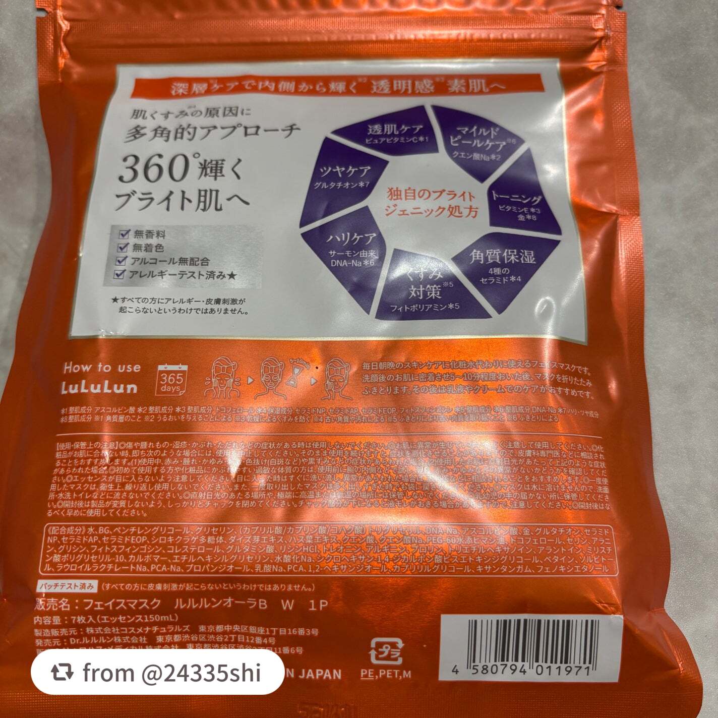\ふっくら♥シートマスク/ルルルンルルルンオーラブライトマスクW7枚入り/¥770〜.個人的なあるあるなんですけど、見かけたことのないor使ったことのないシートマスク買ってしまう。結果、当たり🎯だったのでご紹介!肌の乾燥が気になる今からにおす...