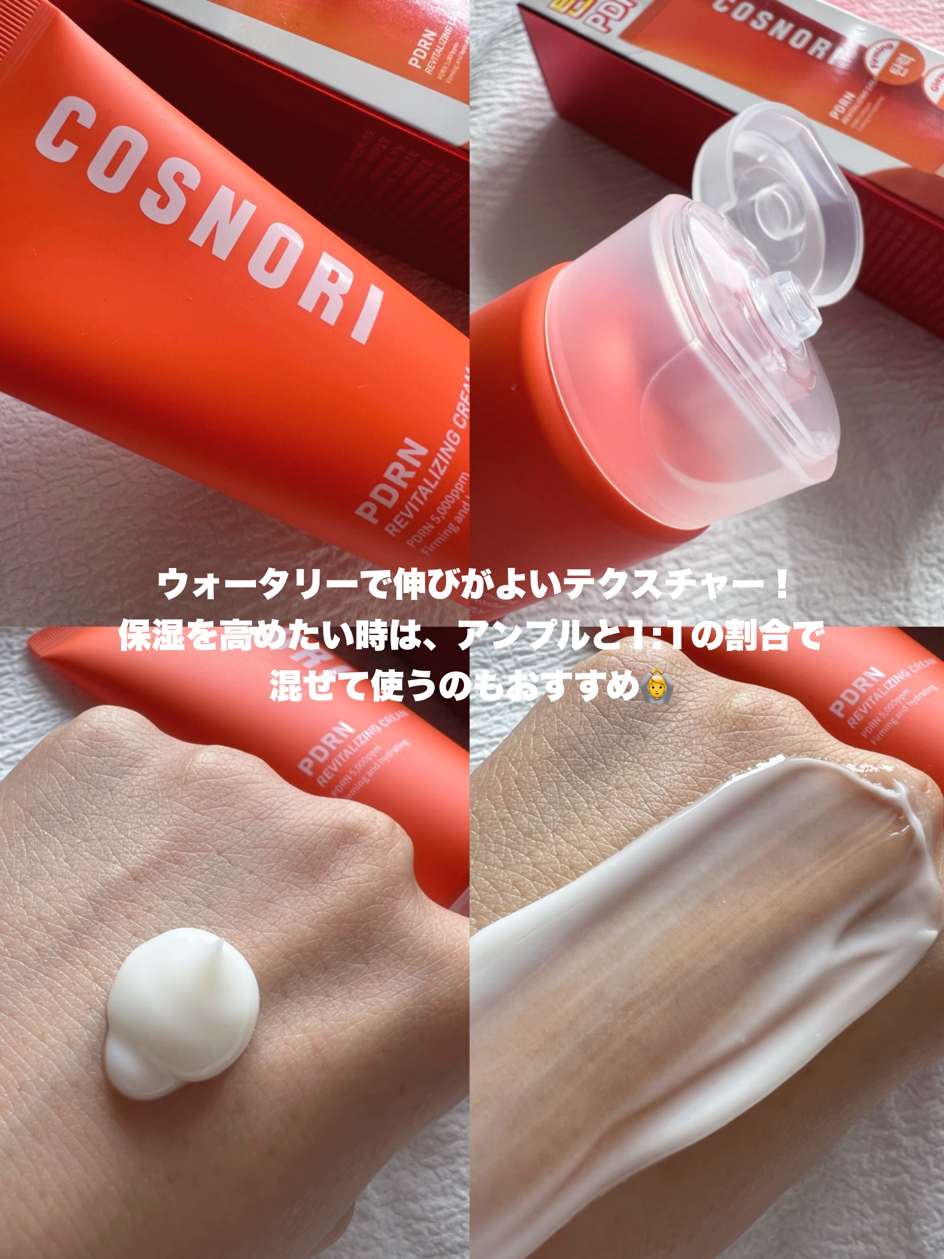 ・COSNORI新作のスキンケアが登場✨PDRNリバイタラジングアンプルPDRNリバイタラジングクリーム♡PDRNリバイタラジングアンプル朝晩の化粧水のあとに🩵サーモンPDRN*l10,000PPM、9種ペプチド配合でぷるんぷるんお肌に✨さら...