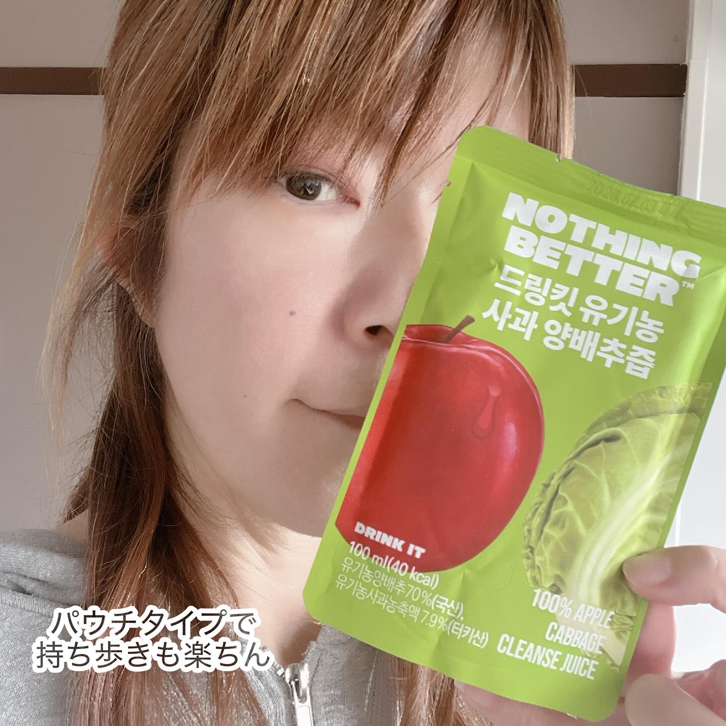 NothingbetterDrinkItAppleCabbageCleaseJuice ナッシングベターのドリンクイットオーガニックりんごキャベツジュース頂きました。丸ごとリンゴと韓国産のオーガニックキャベツを低温抽出して、原料本来の味と栄...