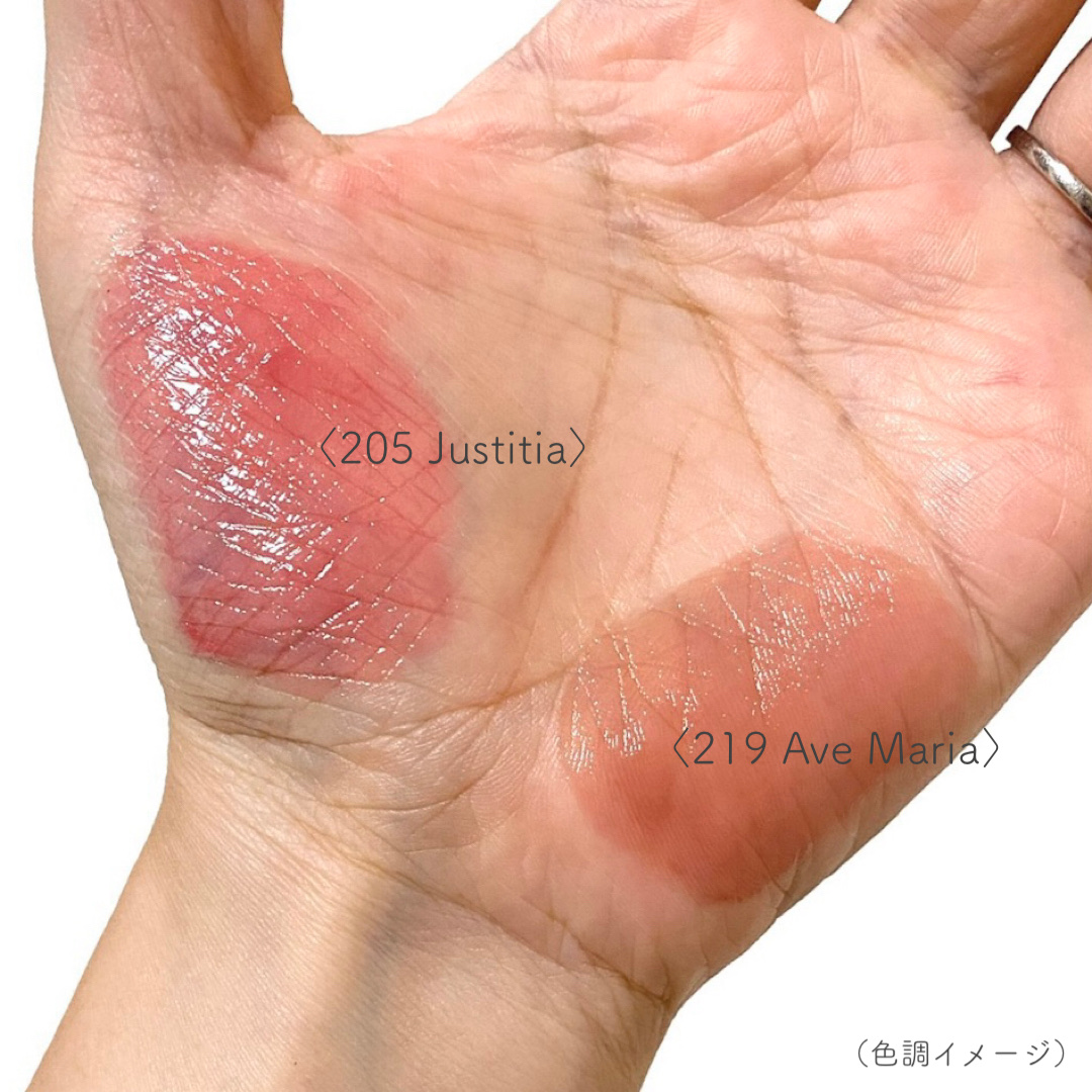 まるでクリオネ⁈ 艶やかで透明感*のある仕上がりが魅力のティント みずみずしくて軽いつけ心地 35%配合した保湿成分(加水分解ヒアルロン酸、BG、グリセリン、(水を含む) なめらかで透明な膜をはり、唇の乾燥を防いでくれるそう。 水彩画からインスパイアされた、水に滲んだようなクリア発色 くすんだカラーも使いやすく 重ね塗りしても重たい仕上がりにならず発色が楽しめます◎