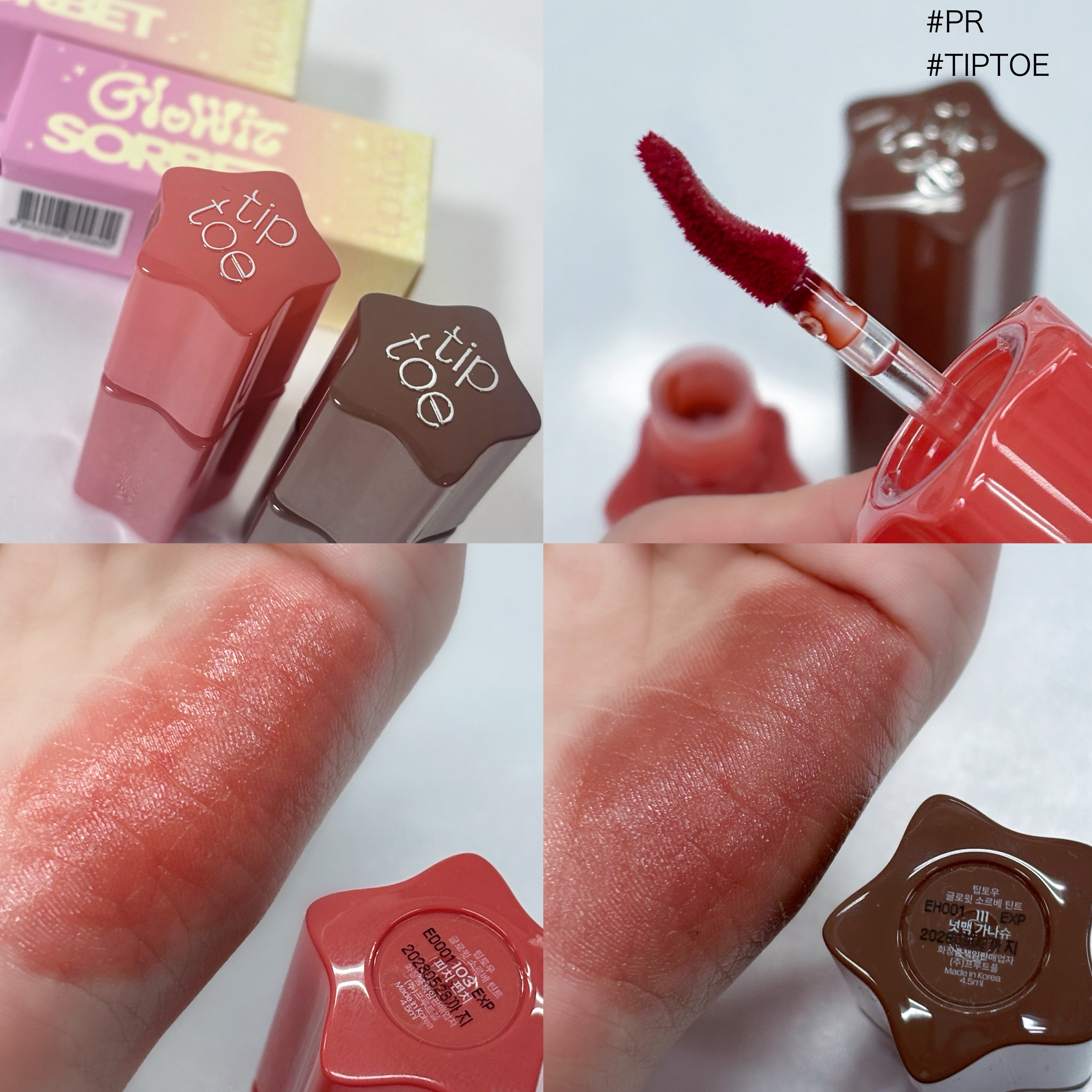 #PR🏷️tiptoe『GlowitSORBETTINT』🍨103ピーチパンチ111ナツメグガナッシュ˗ˏˋソルベが唇に染み込むˎˊ˗透明感のあるカラーシェーで果実のような鮮やかな発色🍑🌰♡#tiptoe#Qoo10#韓国コスメ#ティント...