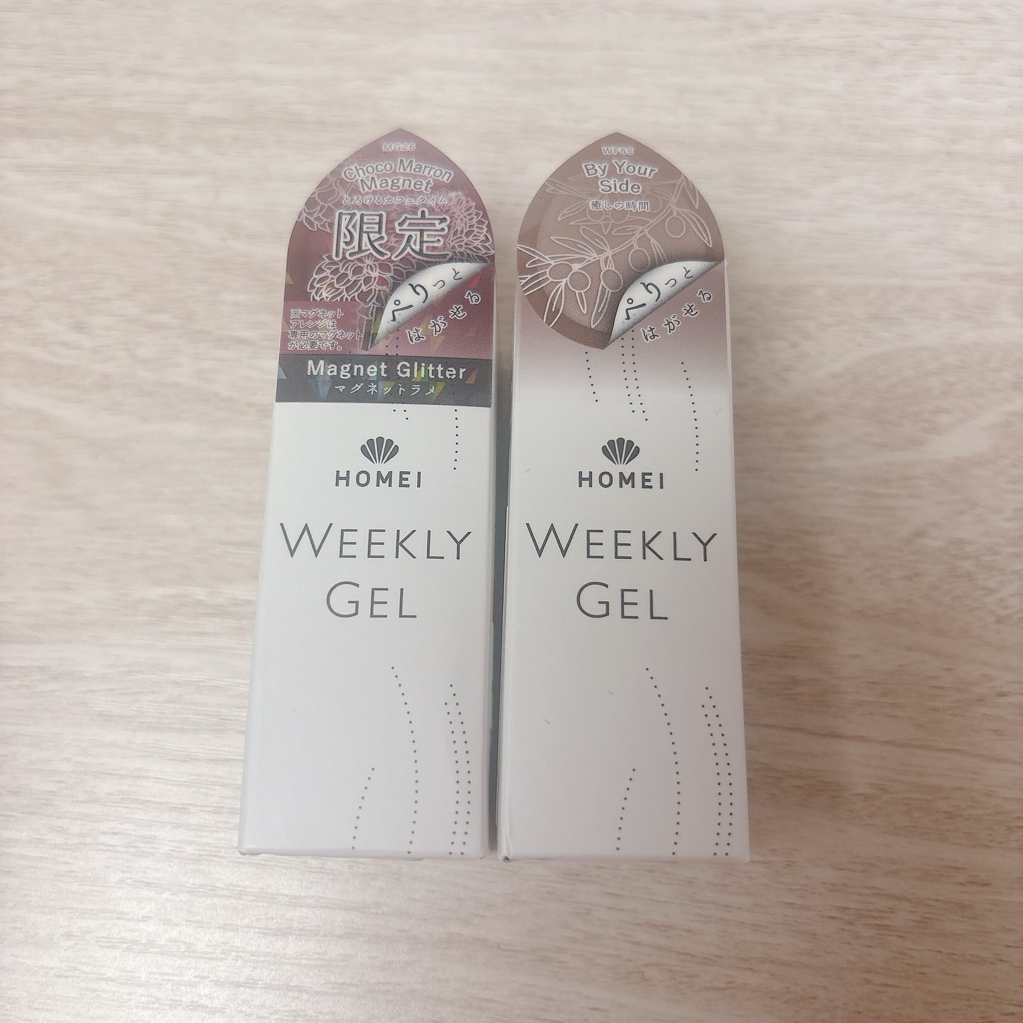 トップベース不要でペリッと剥がしてオフ出来る!HOMEIウィークリージェルの冬にぴったりカラーたちがかんわいい😳✨今回はオンライン限定のHOMEIオフィシャルネイリスト考案色3色・WF66(@mimi375mimiさん考案)・WF67(@za...