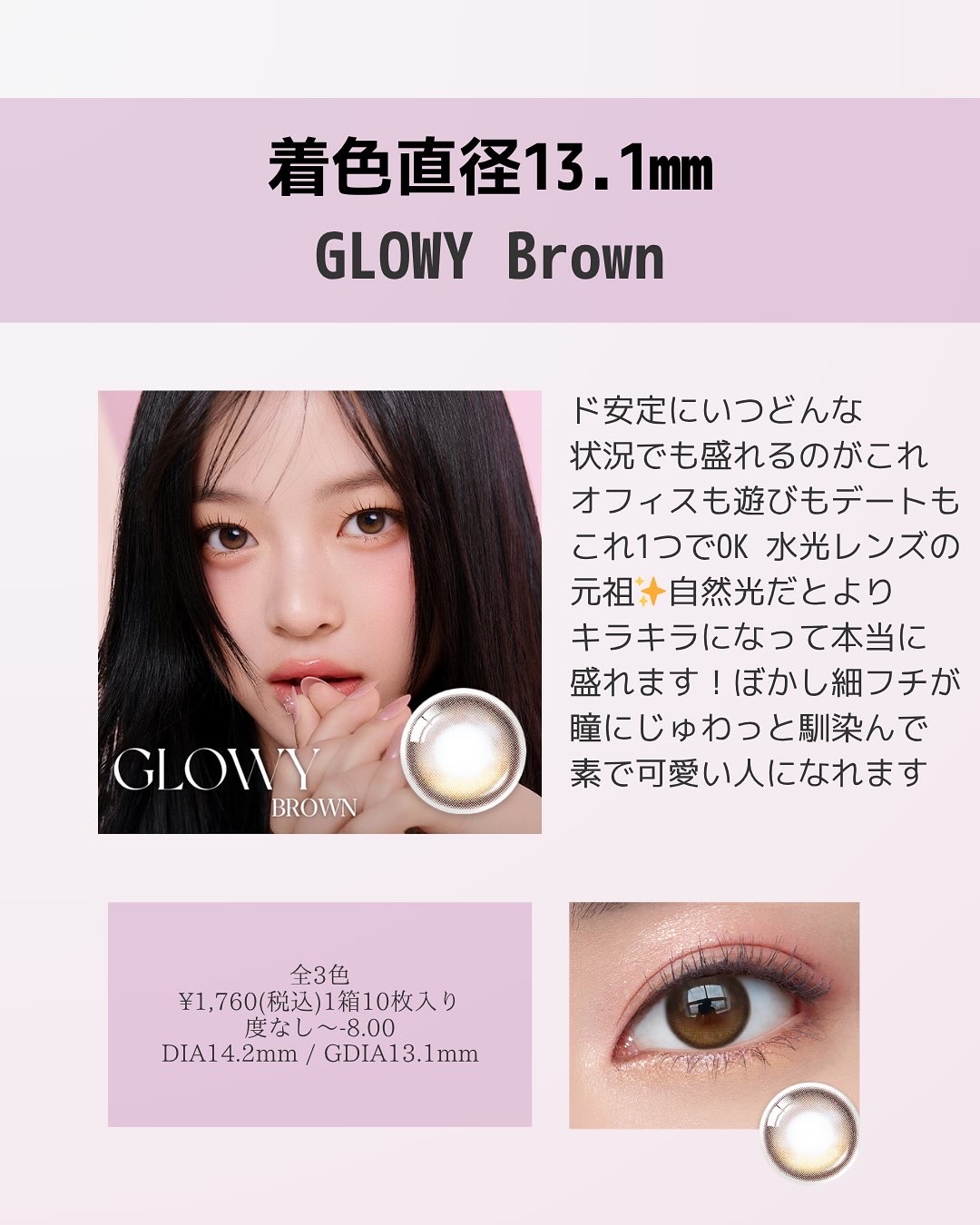 【🤎大人気GLOWYシリーズ3種類徹底比較!🤎】こんにちは☀︎今回は大好きなOLENSさんの大人気GLOWYシリーズの3種類比較投稿になります🫡✨大きさに悩んでいる方にぜひみて欲しいです!!まず一枚目がGLOWYブラウン🍂着色直径13.1ミリ...