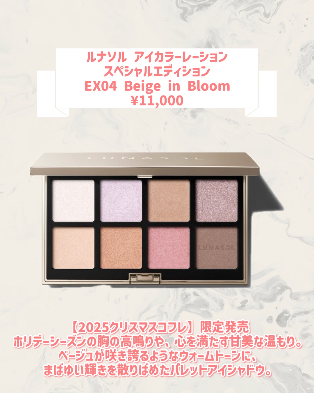 2025🎄ホリデーコフレ⛄️LUNASOLアイカラーレーションスペシャルエディションEX04 BeigeinBloomついに買ってしまった✨ホリデーコフレ♡あとついで(?)にルナソルシークレットシェイドも購入してサンプルたくさんもらった🥰#新...