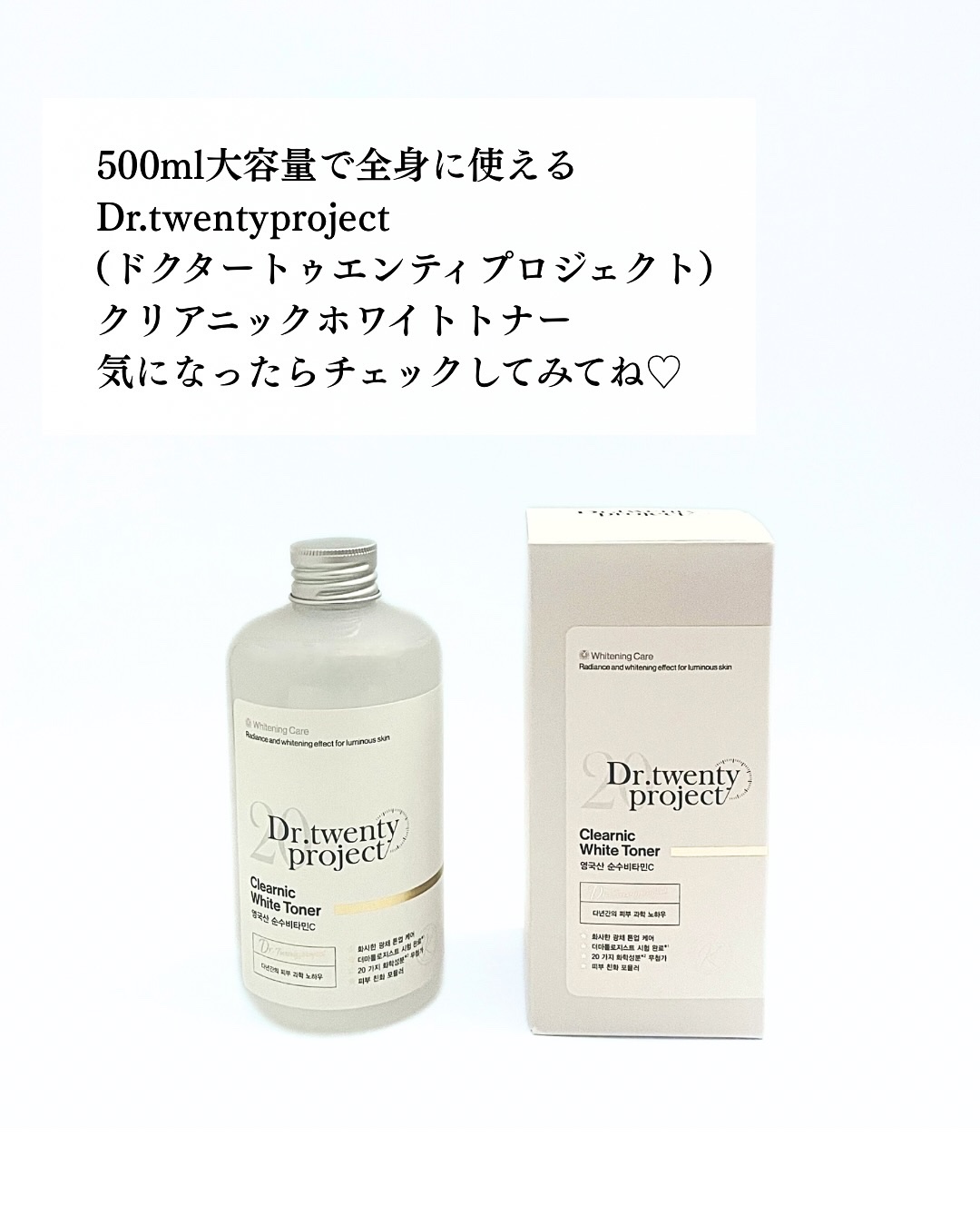 #PRDr.twentyprojectクリアニックホワイトトナー500ml純粋99%ビタミンC、ナイアシンアミド20,000ppm配合くすんだ肌を生き生きとしてくれる大容量トナー!推し化粧水としても使えそう❕バズり化粧水肌荒れをこの1本で肌キ...