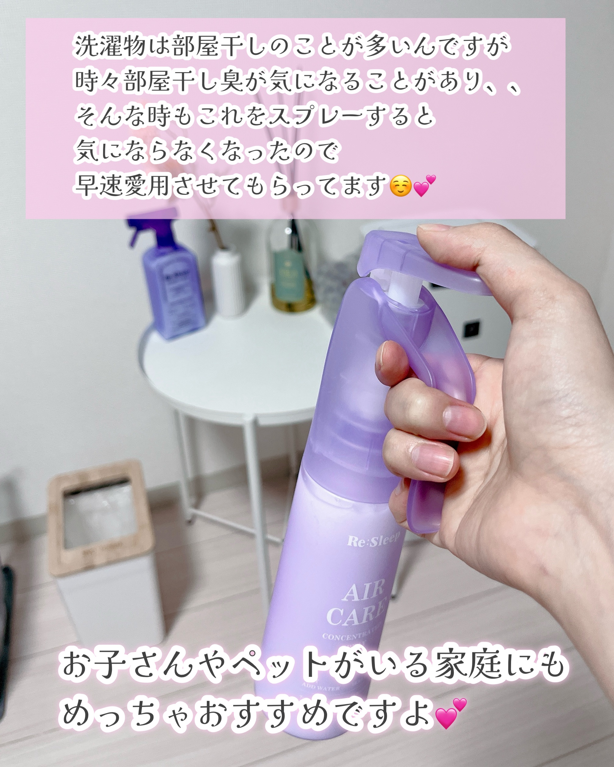 吹きかける空気清浄機!?Resleepエアーケアスプレースリープケアスプレー単に臭いを隠すのではなく、悪臭の原因を科学的に中和して臭いを取り除いてくれるそうですよ☝️エアーケアスプレーはかける空気清浄機!?🍃空気をさわやかにお部屋やカーテン、...