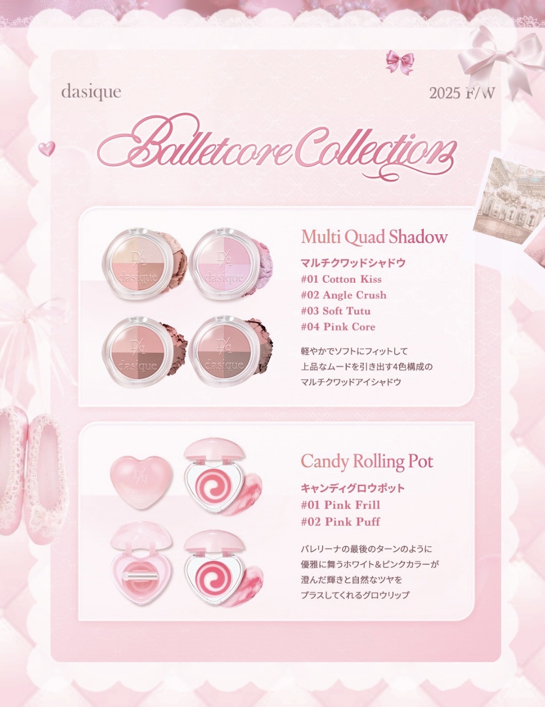 11月メガ割おすすめ💖DasiqueCandyRollingPotハートのケースにときめく💖新色リップ🎀01PinkFrill02PinkPuffクルクル回るバレリーナをイメージしたキュートなアイテム🤍どちらも白みがかったピンクで、可愛らし...