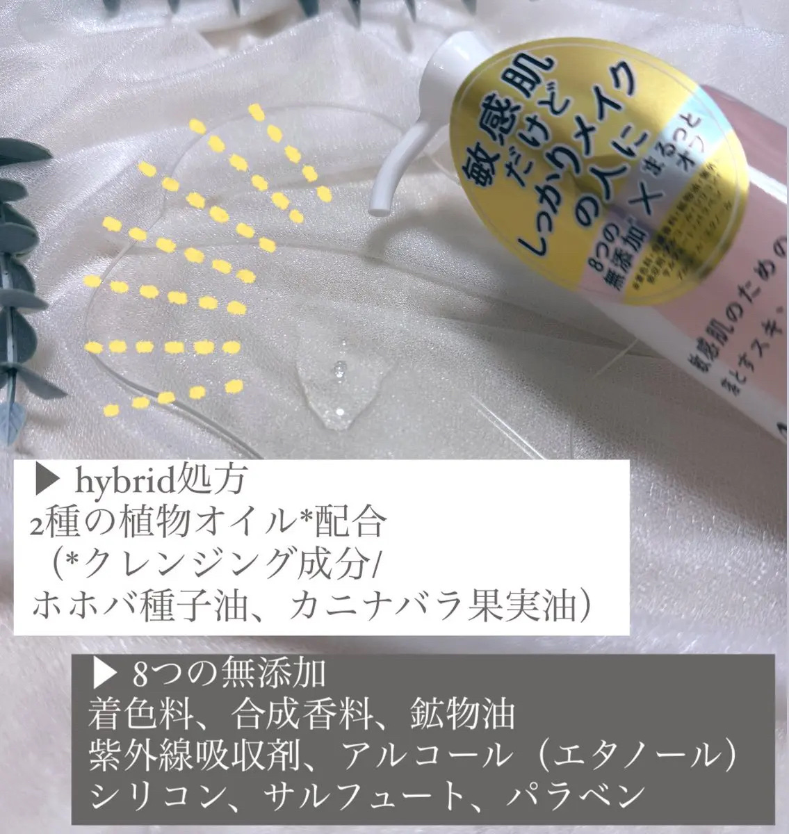 肌に配慮しながらしっかり落とす!“敏感肌のための落とすスキンケア” メイクや毛穴汚れを早くしっかり落とせる「hybrid処方」2種の植物オイル配合で、メイク汚れや皮脂へのなじみがアップ*1。 ウォータープルーフマスカラも落ちると書いてあったので、しっかりメイクで使ってみました。