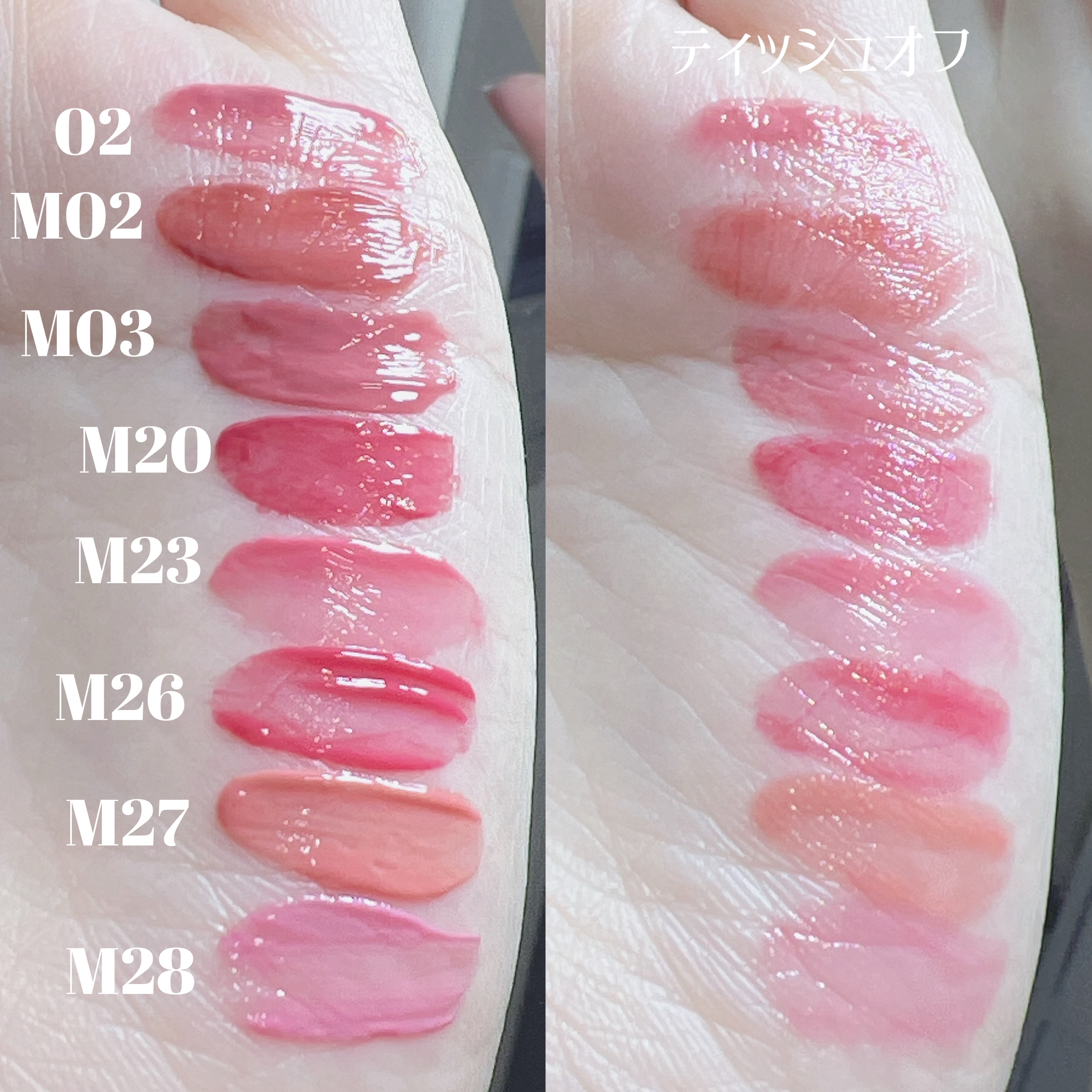 なめらかなつけ心地と落ちにくさすごい✨ ツヤっとしていて透明感もあり☺️ 膜を薄く張ったようなしっとり感で、 塗ってから60秒ほど待ち、 ティッシュオフしてもそのしっとり感は 残っている印象🌼 さらに色移りしにくい仕上がりでした🤍 食べたり飲んだりした時もフチだけ 色残り現象は特になかったです🌱 肌なじみのいいコーラルピンク💕 青みがかわいいモーヴピンクカラー💕 ほどよいテラコッタオレンジ系カラー🧡 青みのあるチェリーレッドカラー🌹 ブラウンレッド系のカラー🤎 ディープレッドカラー🥀